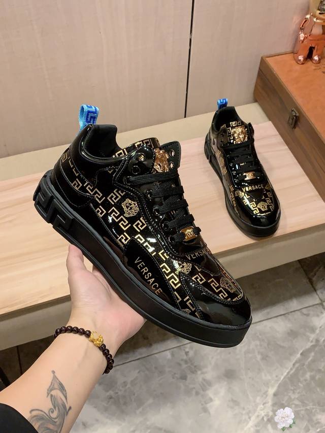 新款: 厂价 范思哲Versce* 最新爆款休闲鞋,顶端品牌 奢侈~代购,顶级~质量。 鞋面選用进口透气牛皮搭配织布材质透气羊皮垫脚 精细做工。原版个性时尚柔软