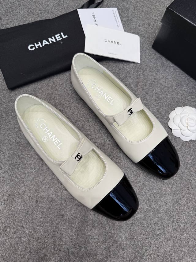 新款Chanel 25B 小香蝴蝶结玛丽珍鞋经典双C小扣平底芭蕾舞鞋