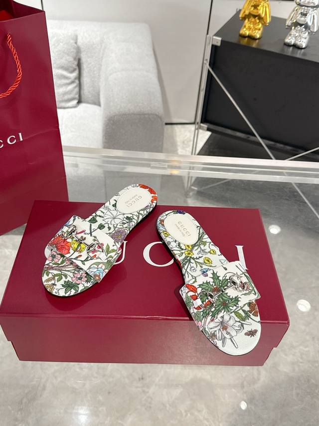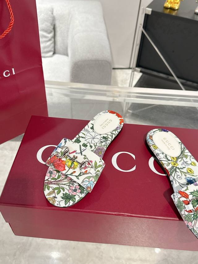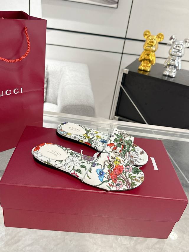 新款Gucci 马衔扣平底凉拖鞋 春夏网红必备拖鞋 Yp一比一还原,所有细节 材质 舒适度 全部跟原版一样了 刻度98%。码数:36-42 40.41.42定做不退换