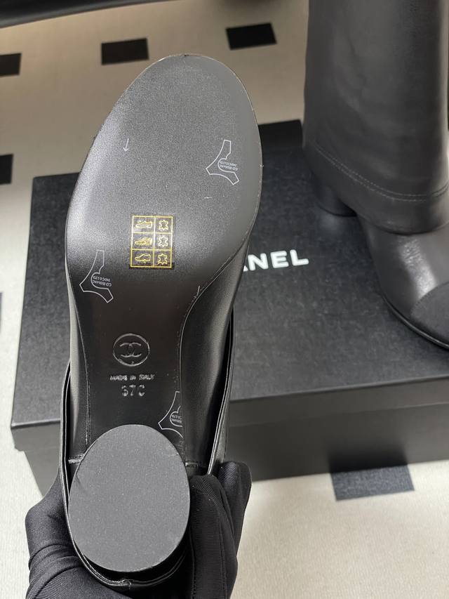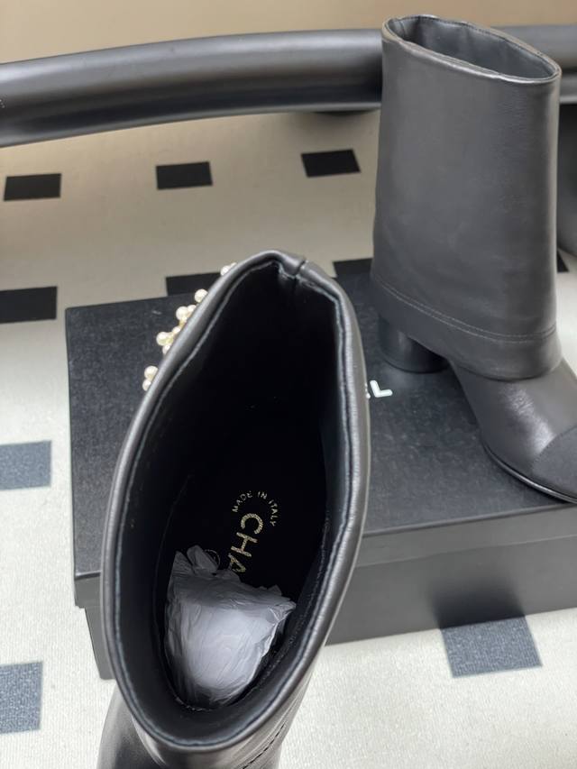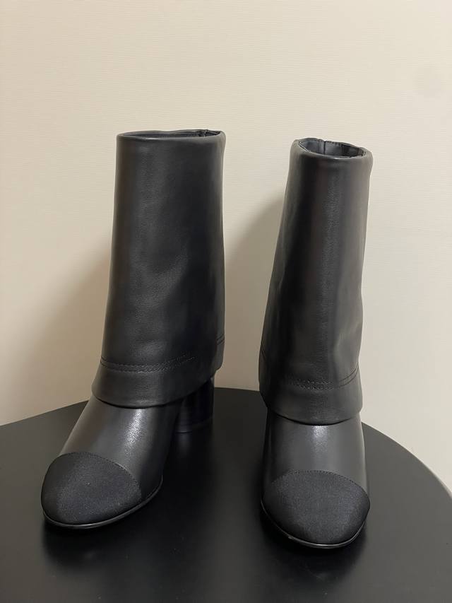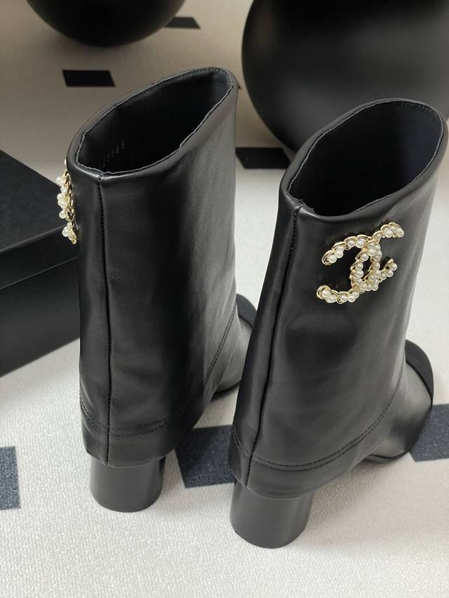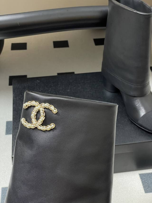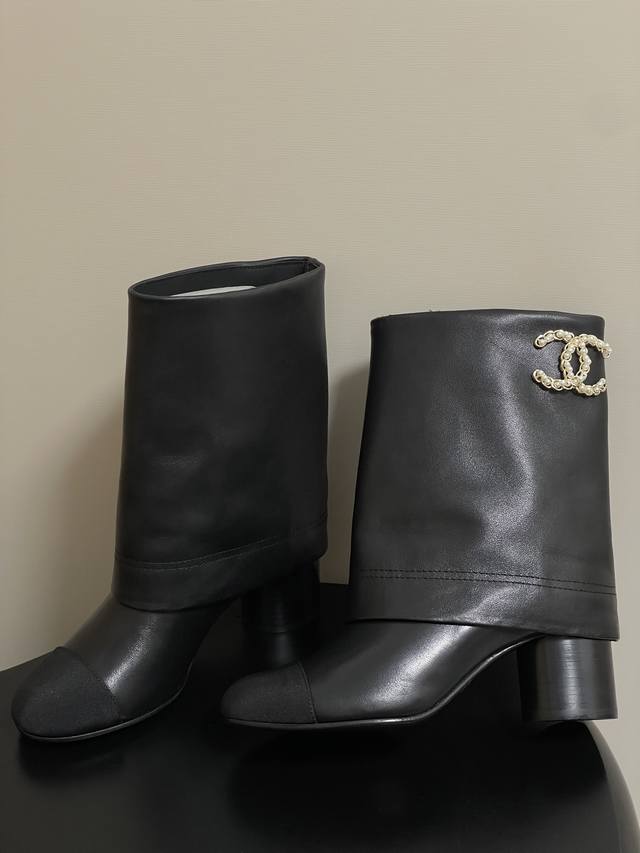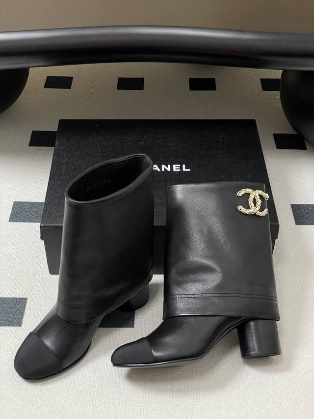 早秋新款Chanel 小香25B秋冬走秀款翻口大链条短靴 粗跟裤管靴