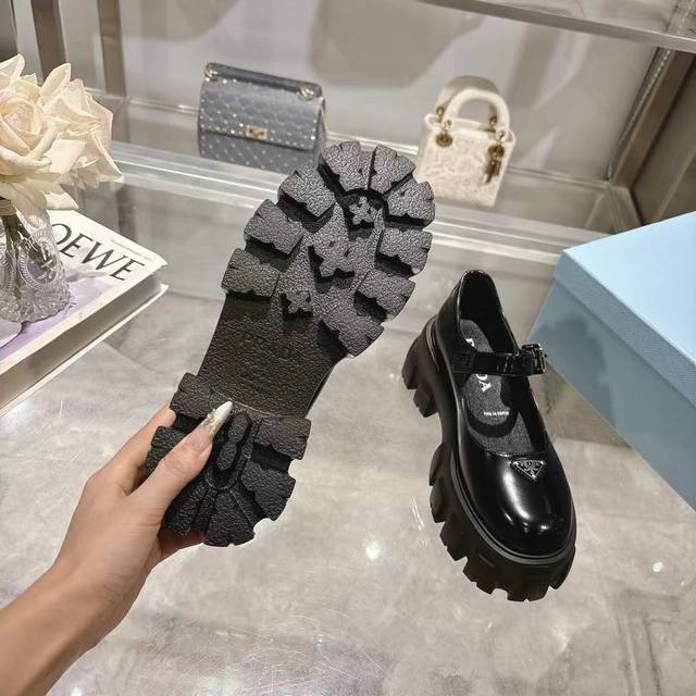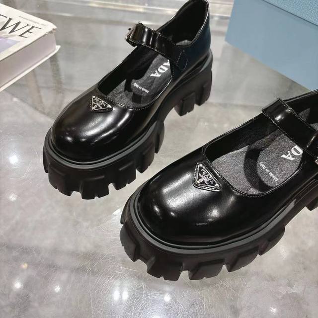 新皮面新色系 Prada 普拉达 春夏新款拖鞋 厚底拖鞋 舒适度与时髦度并存 设计搭配不同风格需求! 鞋面:牛加 内里: 羊皮内里垫脚 大底:开模防滑大底 鞋码