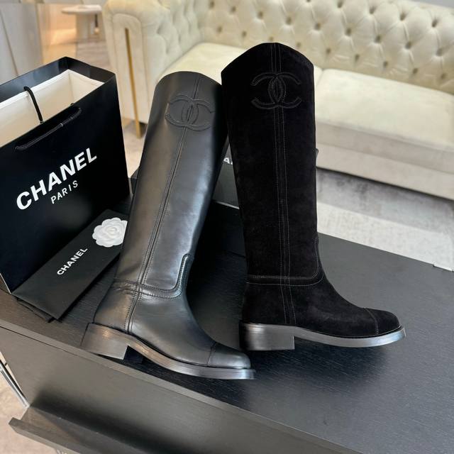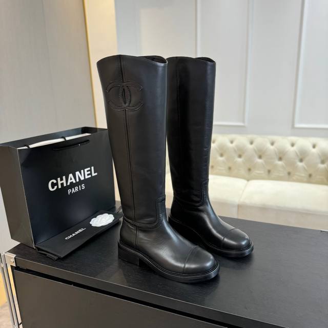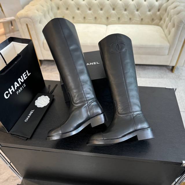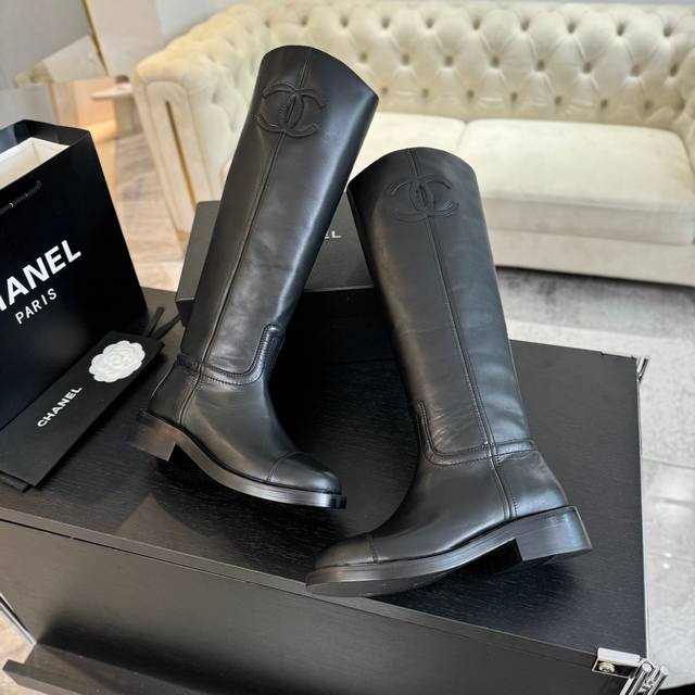 Chane 224 代购级别!香家骑士长靴 简约又经典 软软的小牛皮.超帅气 高级感满满 上脚特别舒服 经典大Logo十分优雅大气 显瘦又时髦