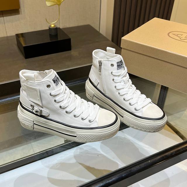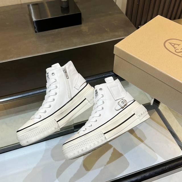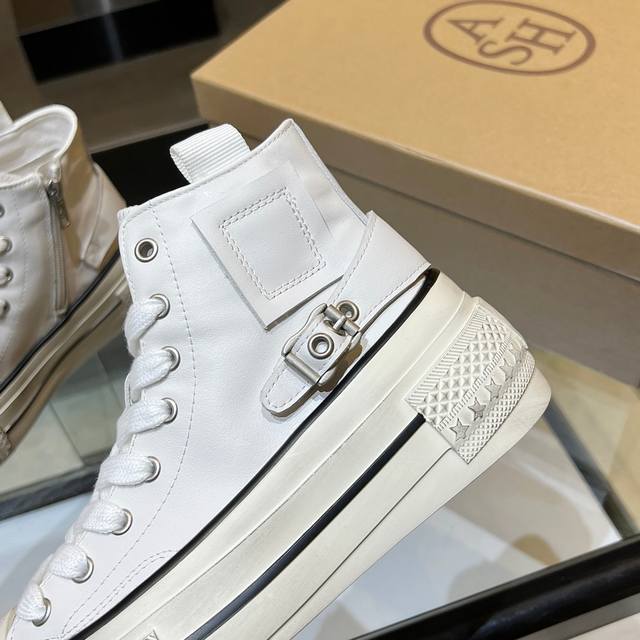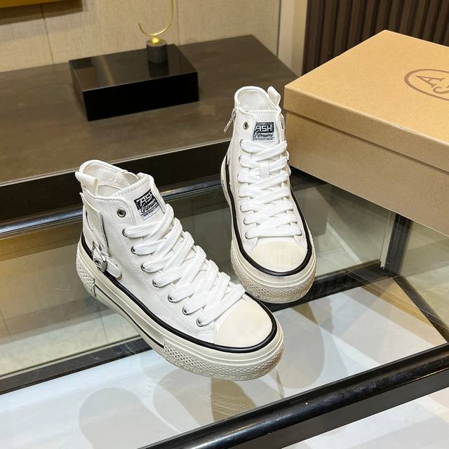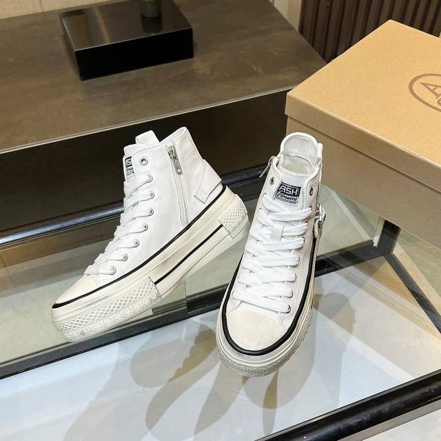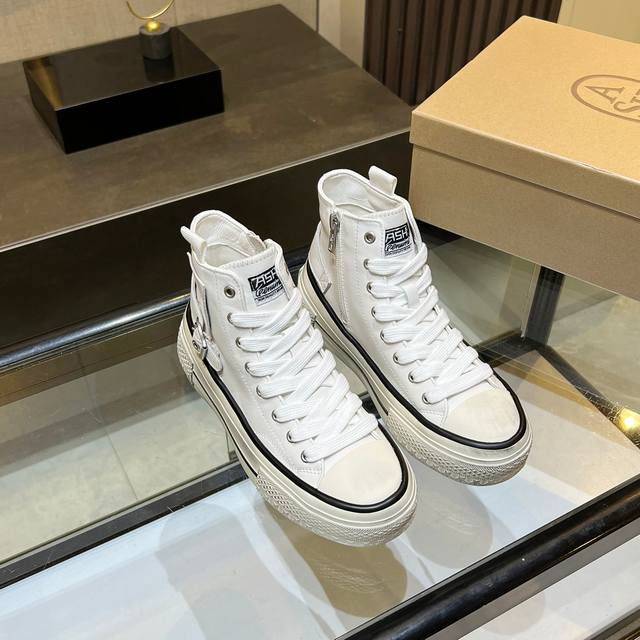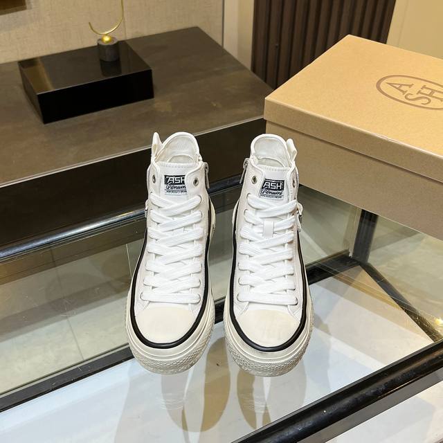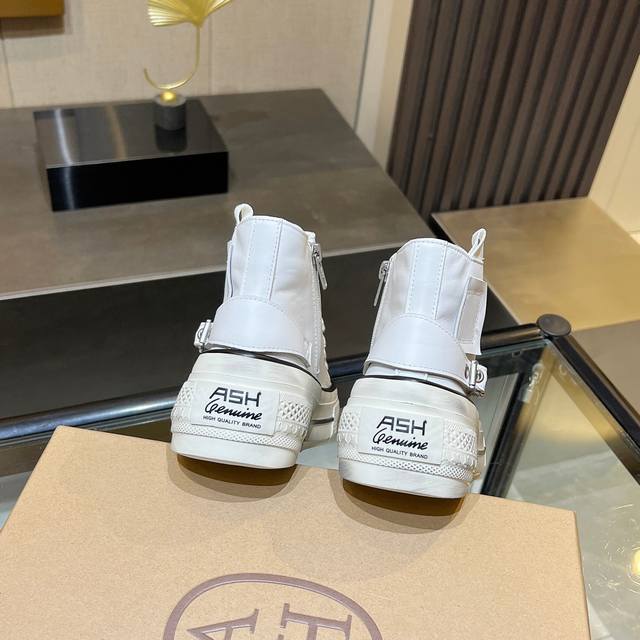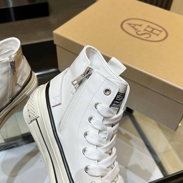 Ash新品女鞋秋季做旧高帮厚底运动休闲潮鞋,精选原版经典金属饰扣,原版开模防滑橡胶大底跟高4Cm抛脏设计,精美线条、简约大气,上脚感超级舒适上档次