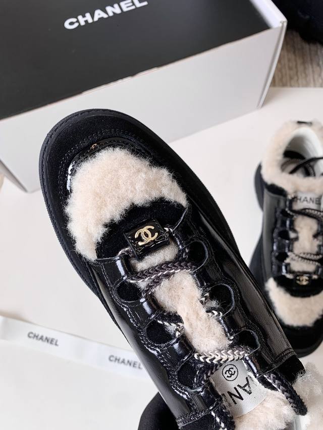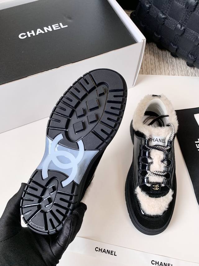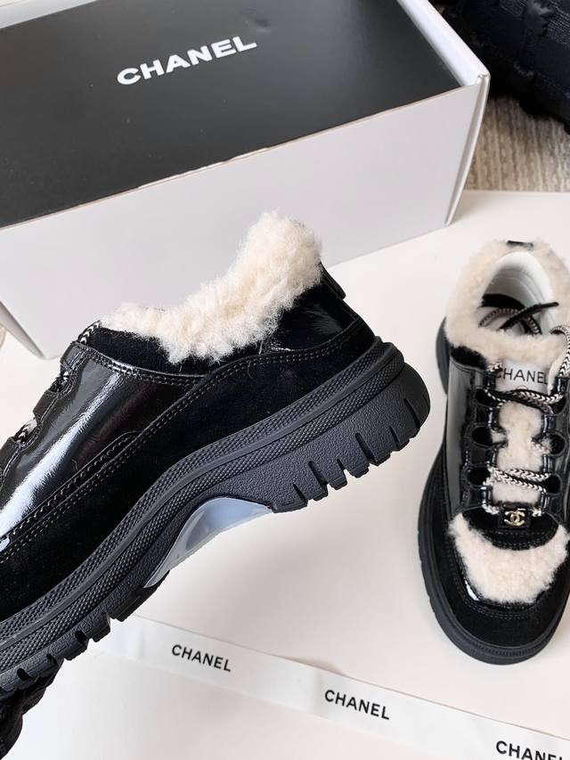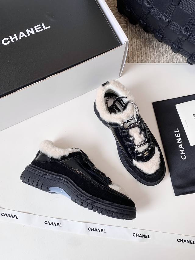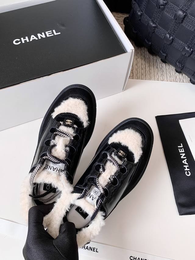 毛 |Chane*小香系带老爹熊猫鞋休闲板鞋.. 25S升级版~高品货 鞋面原版荔枝纹牛皮拼接牛反绒皮~精细车线做工非常到位,认准我家实拍看品质,脚感舒适轻盈,