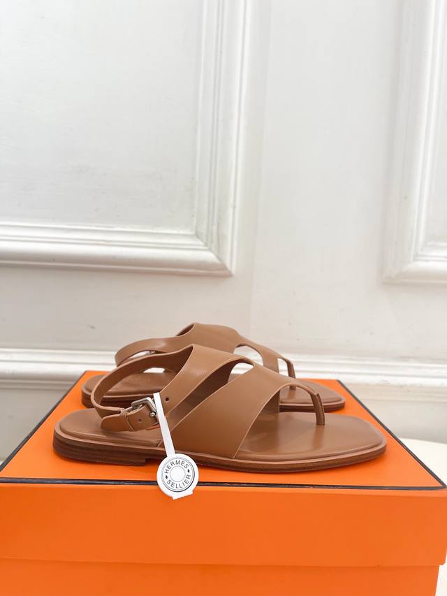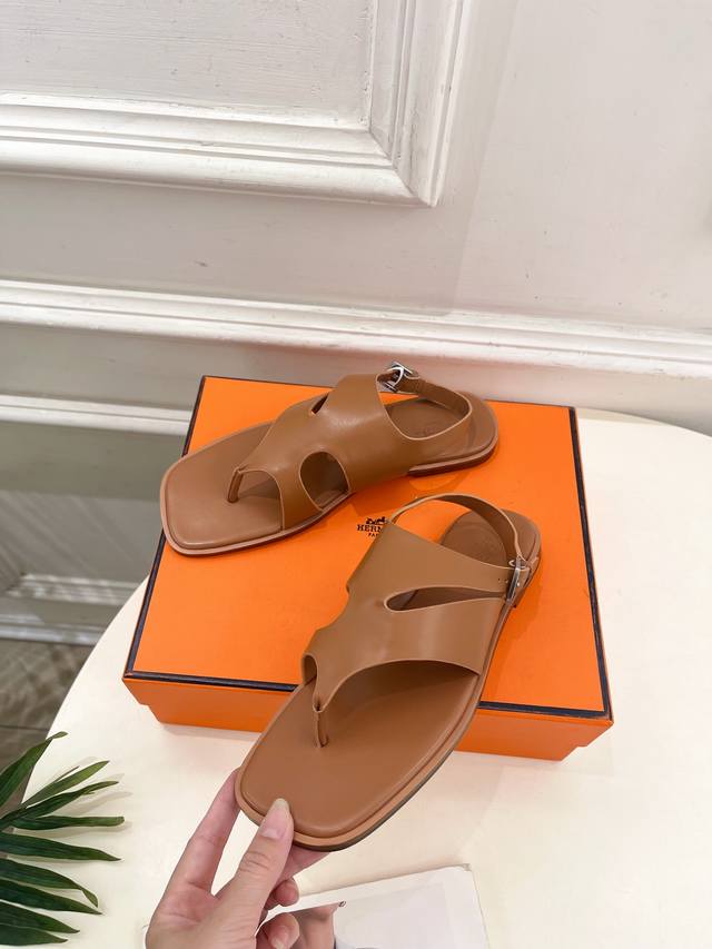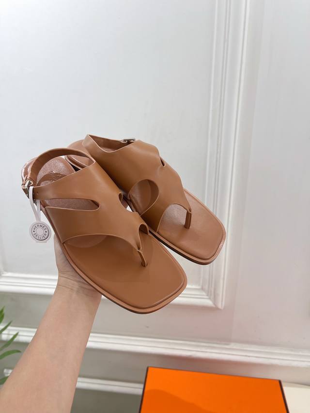 爱玛仕 25 2025春夏新品 专柜新款Karen几何图形夹脚凉鞋 系列 鞋面:原版特定小牛皮 麂皮 内里:进口混种羊皮 大底:原版意大利真皮大底 跟高:平底