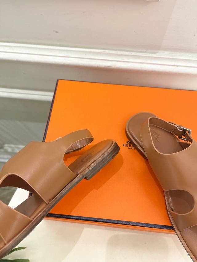 / 爱玛仕 25 2025春夏新品 专柜新款Karen几何图形夹脚凉鞋 系列 鞋面:原版特定小牛皮 麂皮 内里:进口混种羊皮 大底:原版意大利真皮大底 跟高:平底