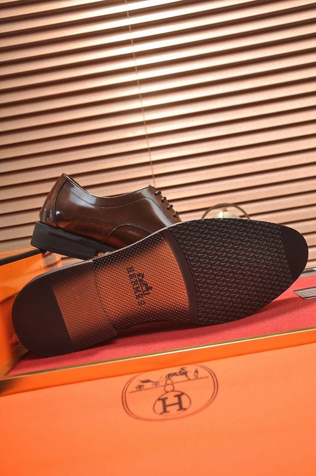 爱马仕 Hermes 羊皮内里 意大利顶级奢侈他不追求新奇的款式和华丽的色彩,以其完美无瑕、优雅、经典的风格吸引着成功男士的青睐!这款非常非常舒适,简洁稳重的款式让您轻松搭配任何风格!版型绝对原版套楦1:1精制,材质方面我们更是精益求精,进口牛皮+牛皮内里质感非凡!.黑色 棕色 码数:38一45!