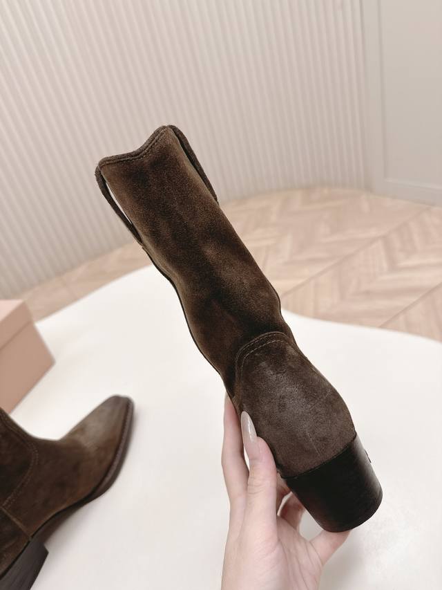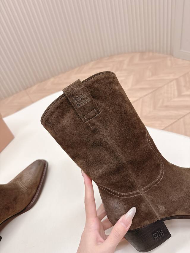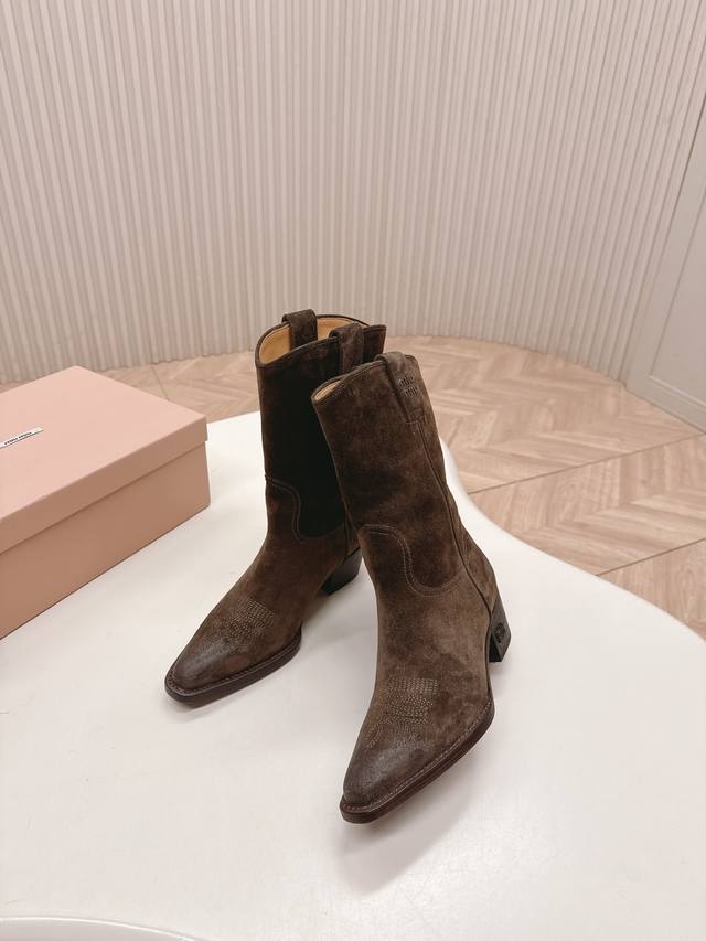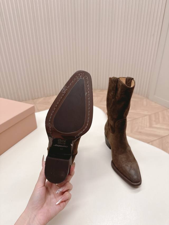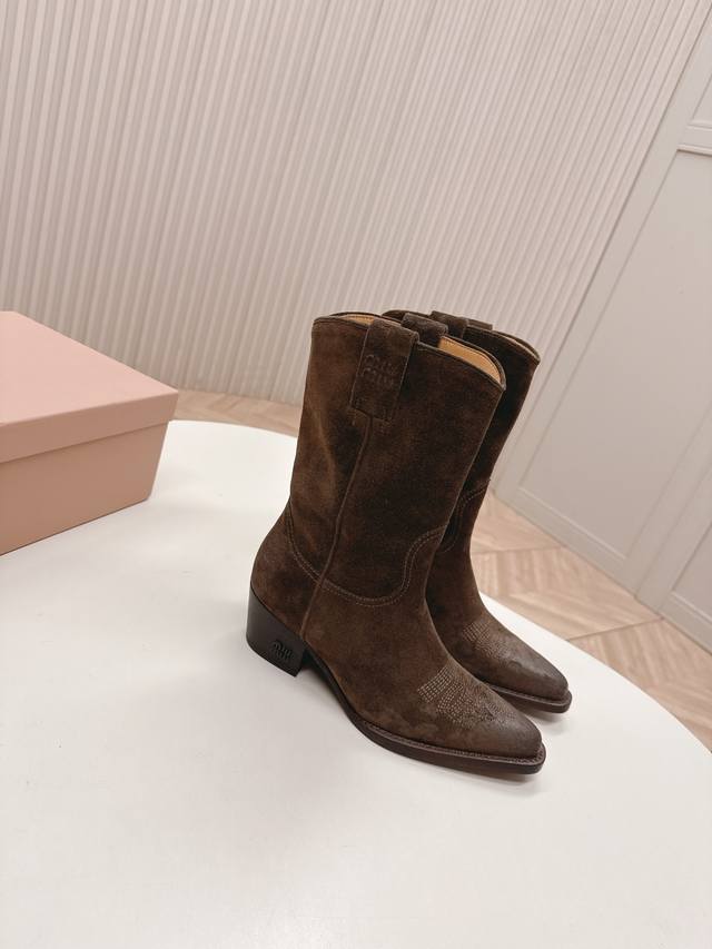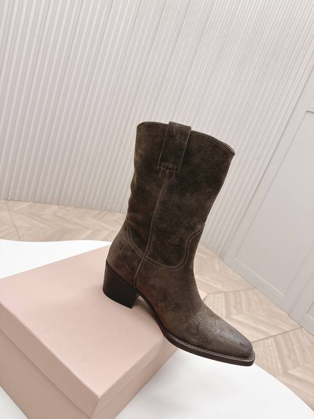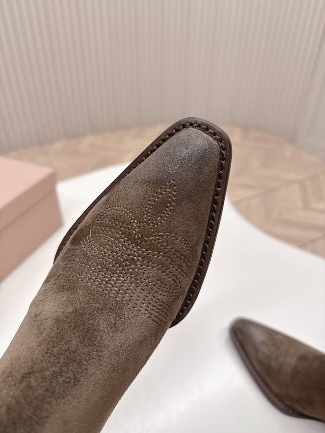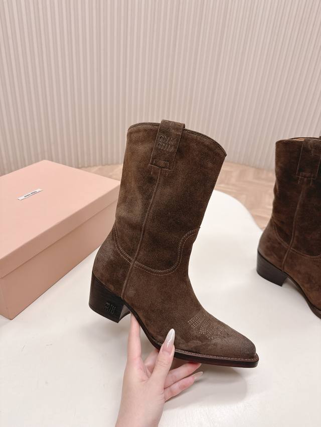 牛猄面 皮面 Miumiu缪缪秋冬最新款西部牛仔靴