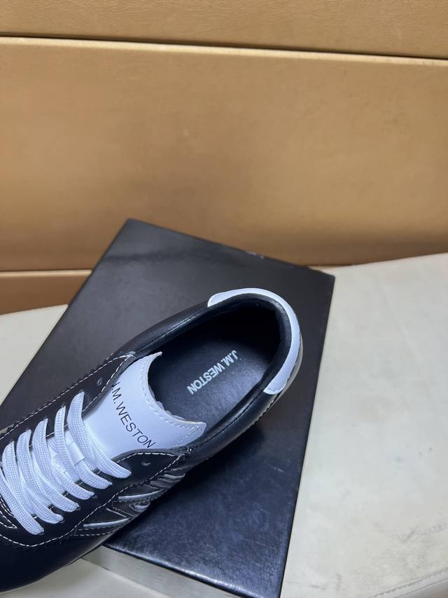 独家首发 J.M Weston 独特现代风运动鞋。专柜代购休闲 意大利进口原版皮, 猪里 拒绝脱色磨脚 鞋底:原厂特供原版底,超酷 系带走路都带风风格设计 原单