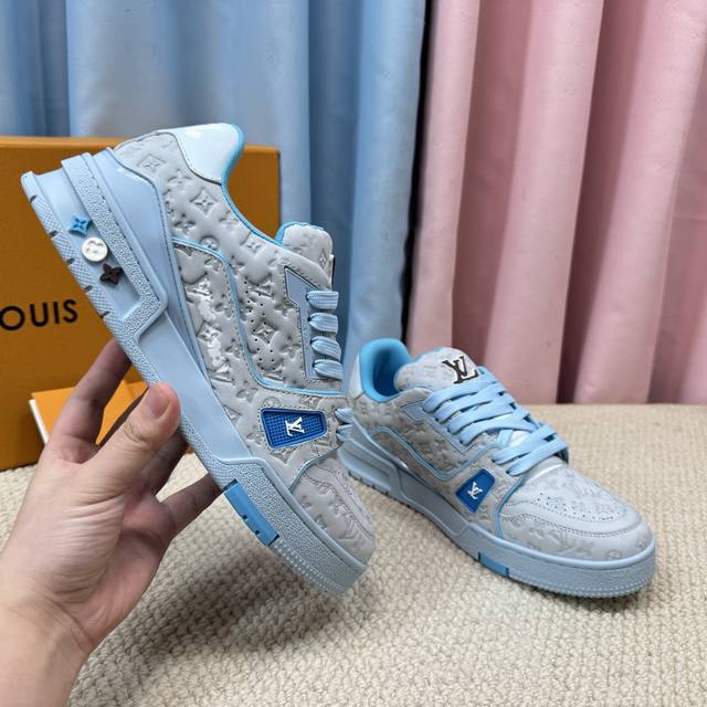 鞋面由意大利进口小牛皮拼接,侧边饰有品牌Logo标志及签名,进口了透气网布内里,脚感超舒适。原厂特供原版双色Tpu吸模大底。套包工艺 固特异缝合锁边