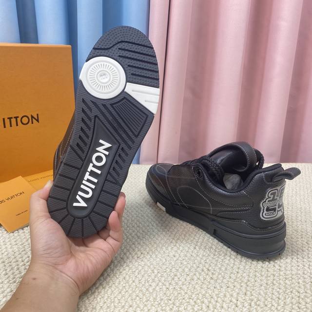 鞋面由意大利进口小牛皮拼接,侧边饰有品牌Logo标志及签名,进口了透气网布内里,脚感超舒适。原厂特供原版双色Tpu吸模大底。套包工艺 固特异缝合锁边