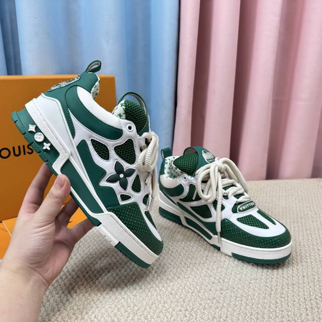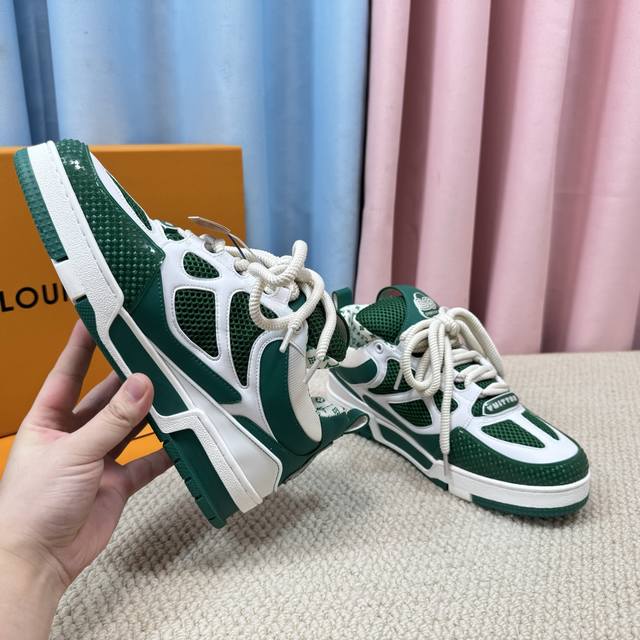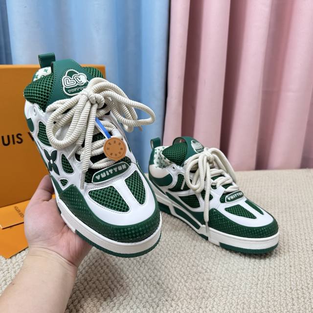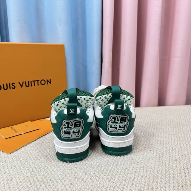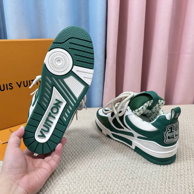 鞋面由意大利进口小牛皮拼接,侧边饰有品牌Logo标志及签名,进口了透气网布内里,脚感超舒适。原厂特供原版双色Tpu吸模大底。套包工艺 固特异缝合锁边