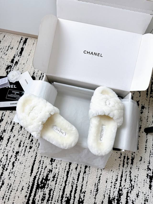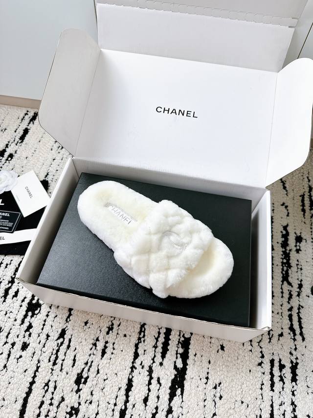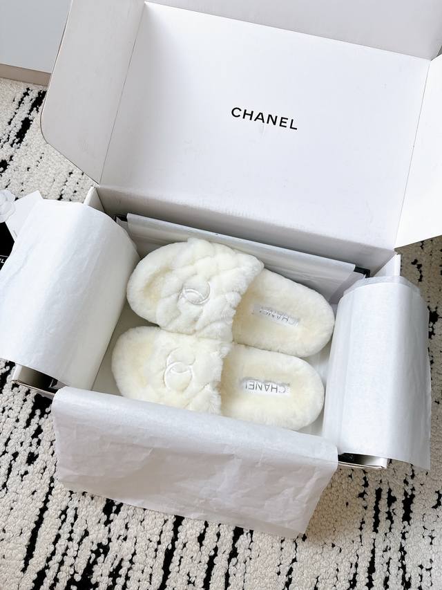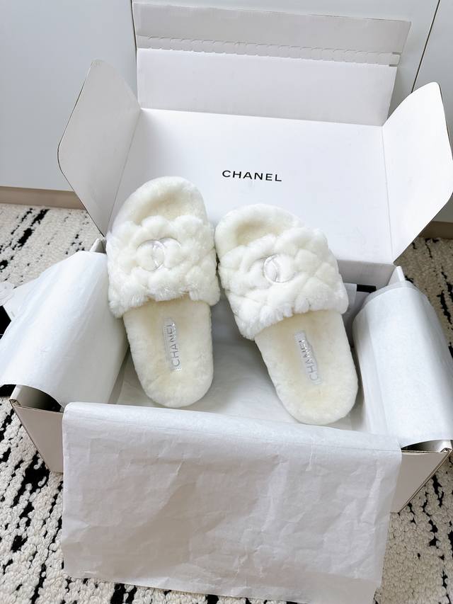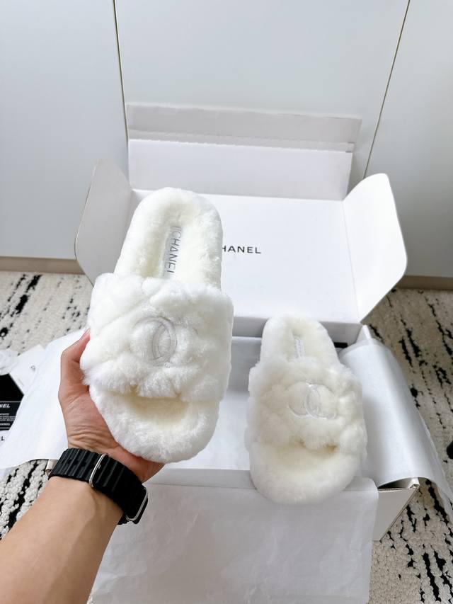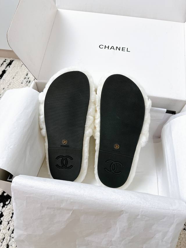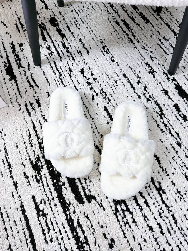 流行风纯皮毛一体羔羊毛打造!小香Lg超温暖的感觉,穿上仿佛踩在云朵上 精致高级!让这双毛拖身价陡增!非常好穿不打滑,而且鞋底有一定厚度,舒适度极佳!