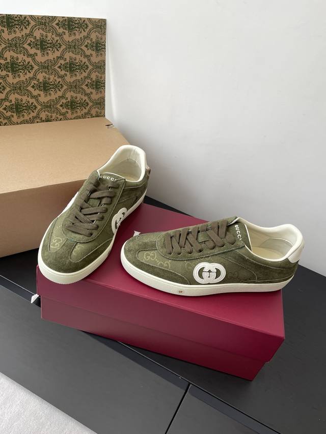 这双鞋由柔软的麂皮制成 散发出精致而现代的魅力 经典的Interlocking G标志优雅地突显了流线型版型 为设计增添精致的触感