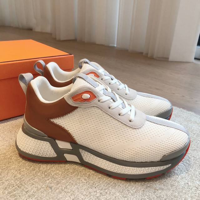 Hermes 爱马仕 -高端品质 原单 休闲运动鞋 -鞋面:纳帕小牛皮、反绒羊京皮、鞋舌.空压品牌Logo、后跟品牌织带 -内里:水染牛皮...