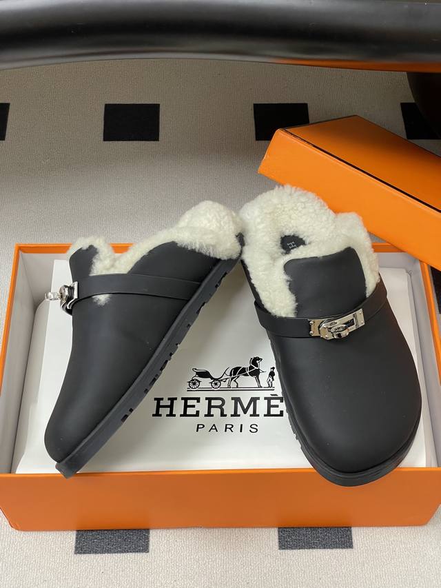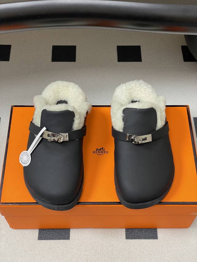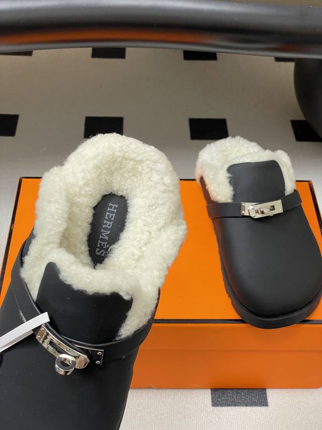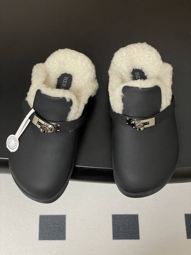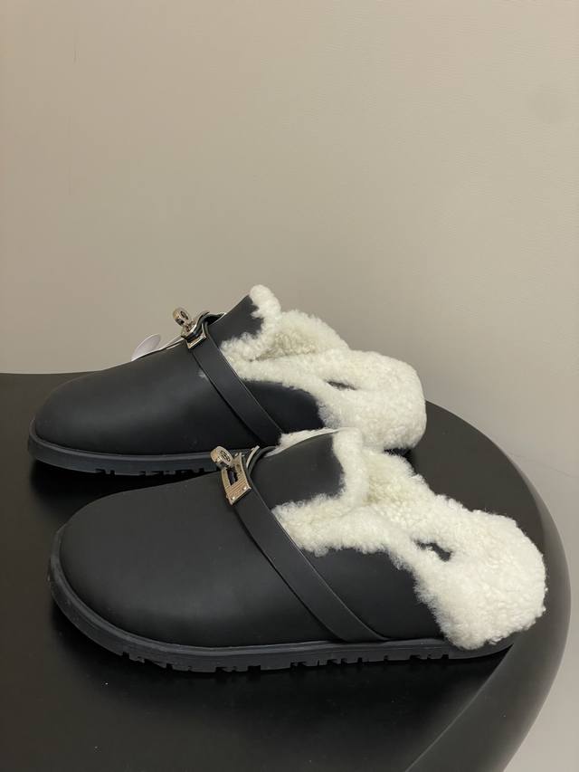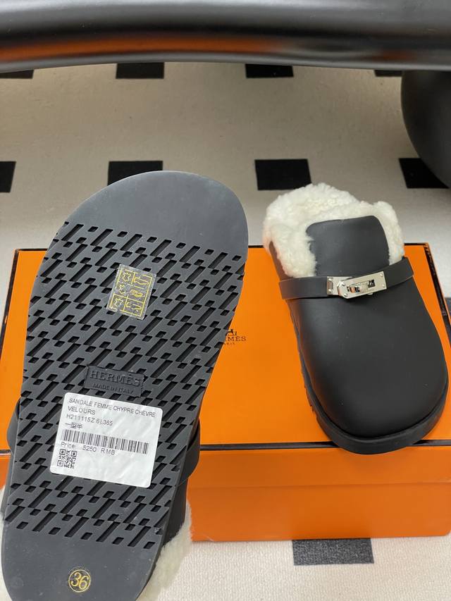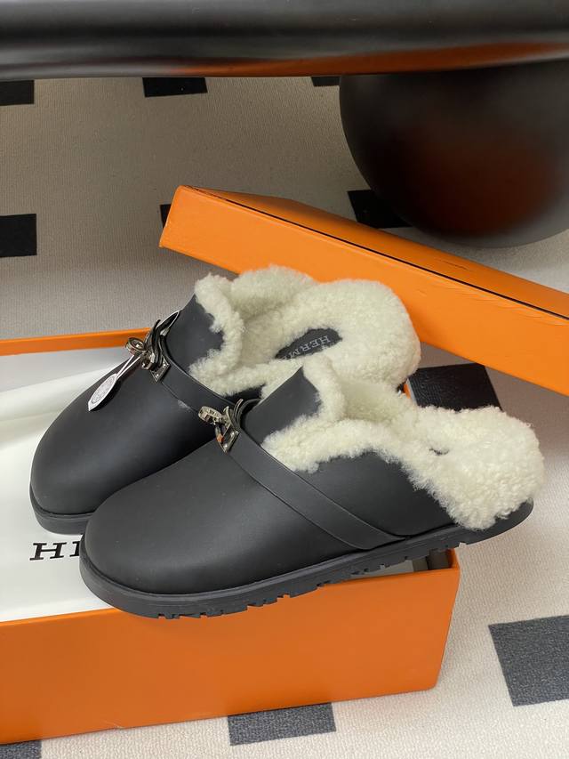 Hermes 爱马仕 H家 Kelly扣经典款二舅拖鞋穆勒羊毛半拖鞋情侣款休闲懒人鞋勃肯毛拖鞋