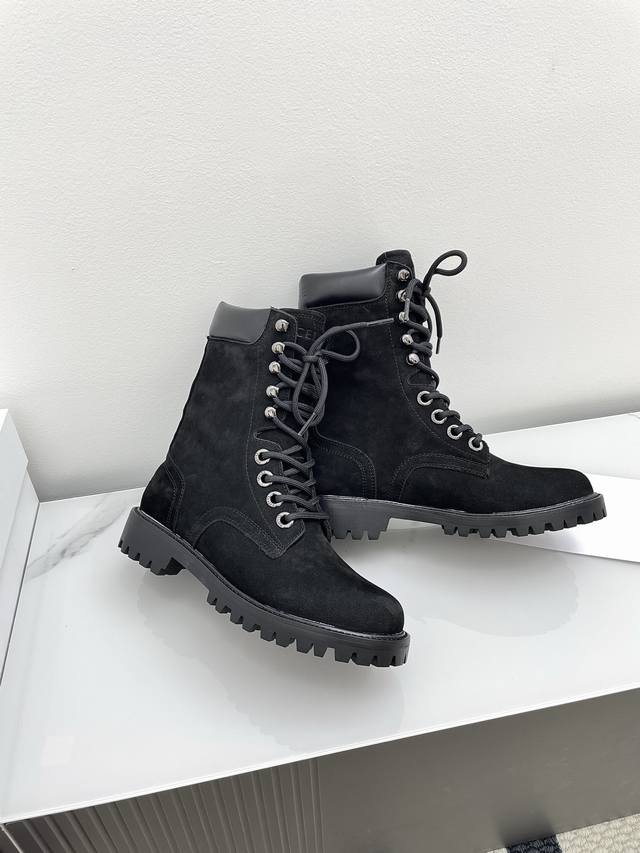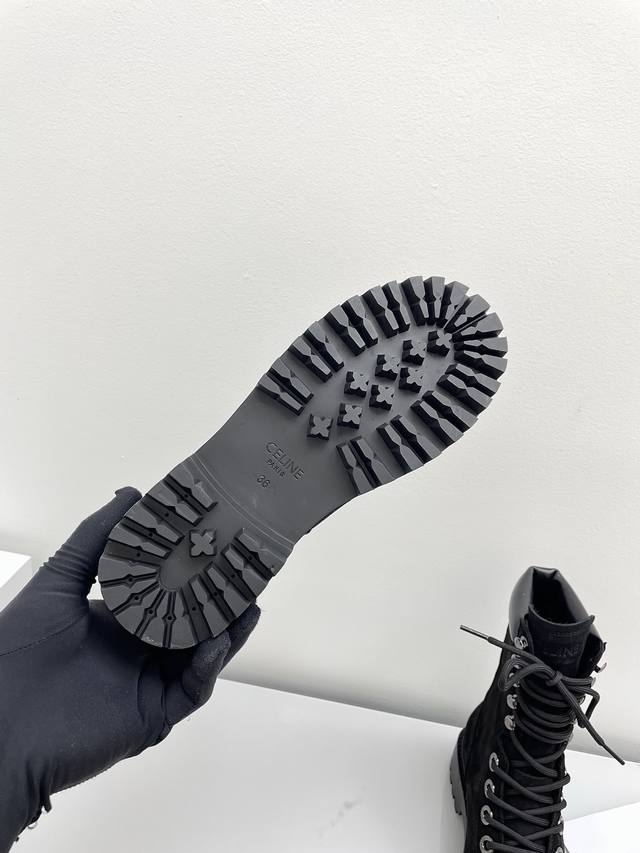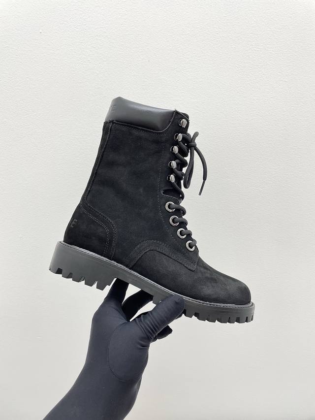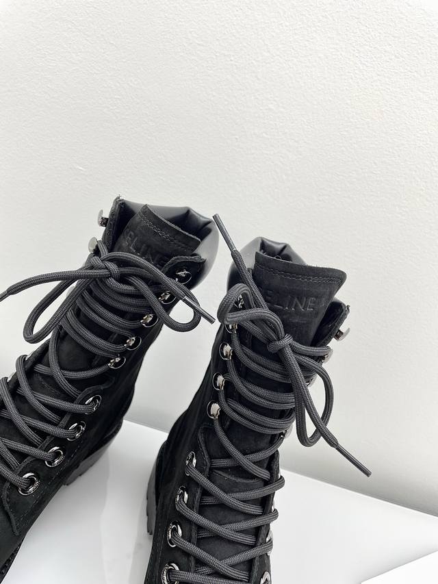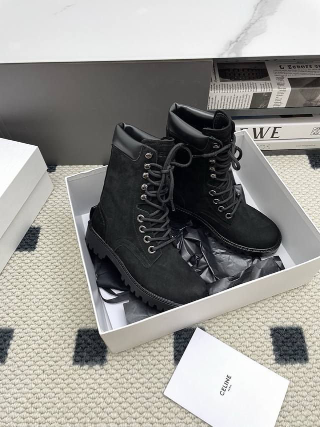 男10情侣款Celine 思琳 25Ss秋冬新款系带短靴 大黄靴