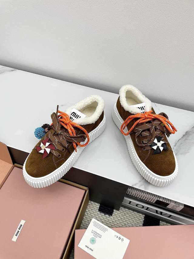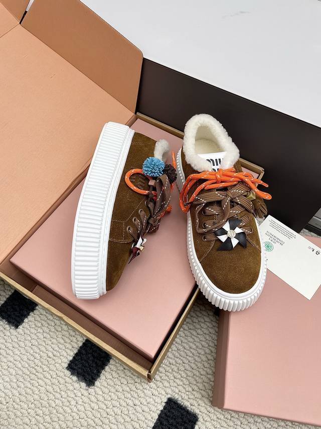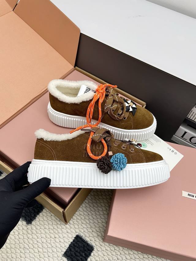 皮里 毛里430 两个价格P任选 飞机盒版本Miumi* 缪缪 松糕厚底休闲小白鞋帆布鞋 包头半拖饼干鞋