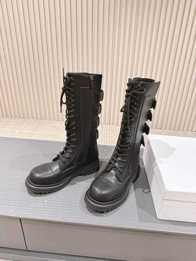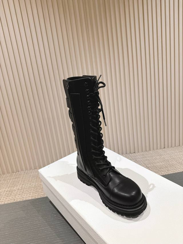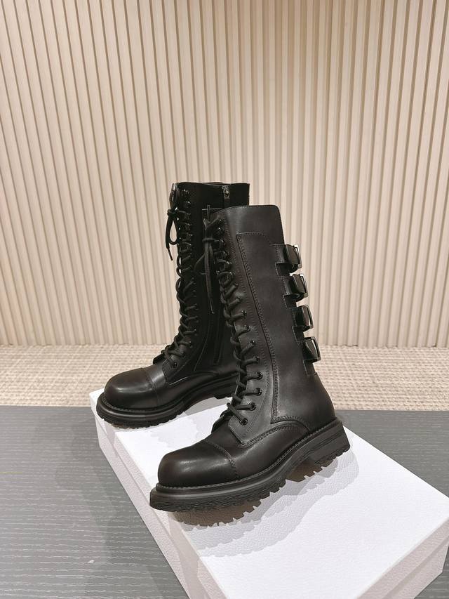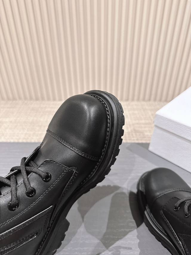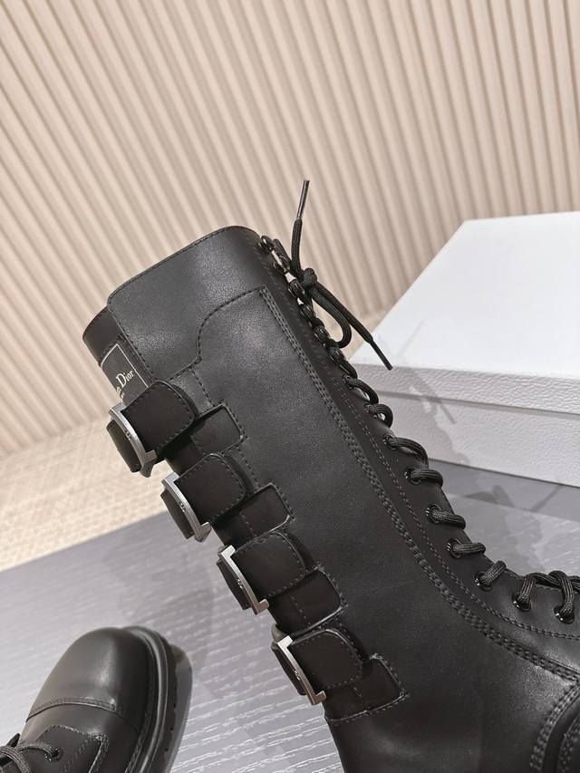 靴子采用别具一格的设计元素打造醒目的外观。采用黑色牛皮革打造,可轻松穿脱。从 Dior Book Tote 手袋汲取灵感,顶部饰以双色“Christian Dior”标志。带有“Cd”标志的可调节尼龙带和波纹橡胶鞋底构成醒目轮廓的基调。