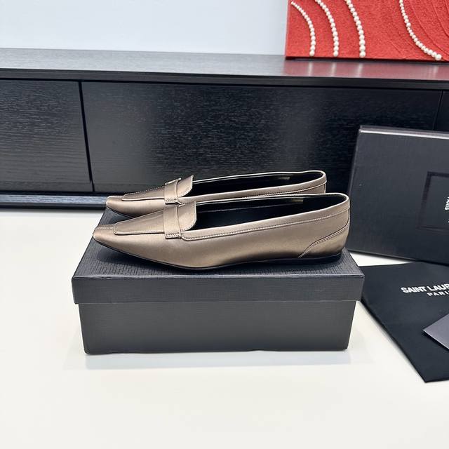 真丝 牛皮 代购版 Saint Lauren*Ysl圣罗兰25年新款平底小方头单鞋 鞋面:真丝 开边珠牛皮 大底:进口真皮大底 码数:35-39定做.40.41