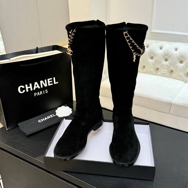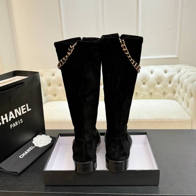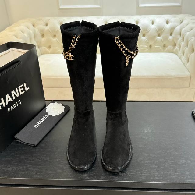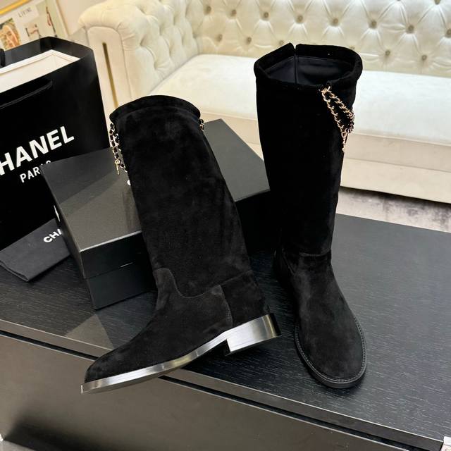 秋冬新款 Chanel小香25B新品四叶草双C扣链条靴子绒面短靴