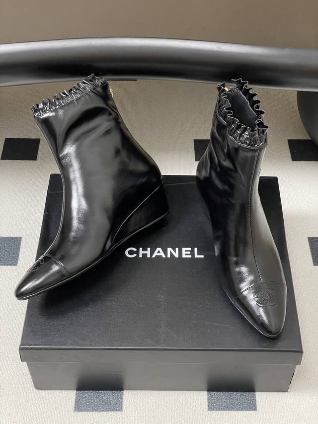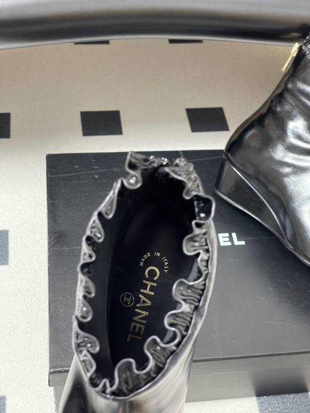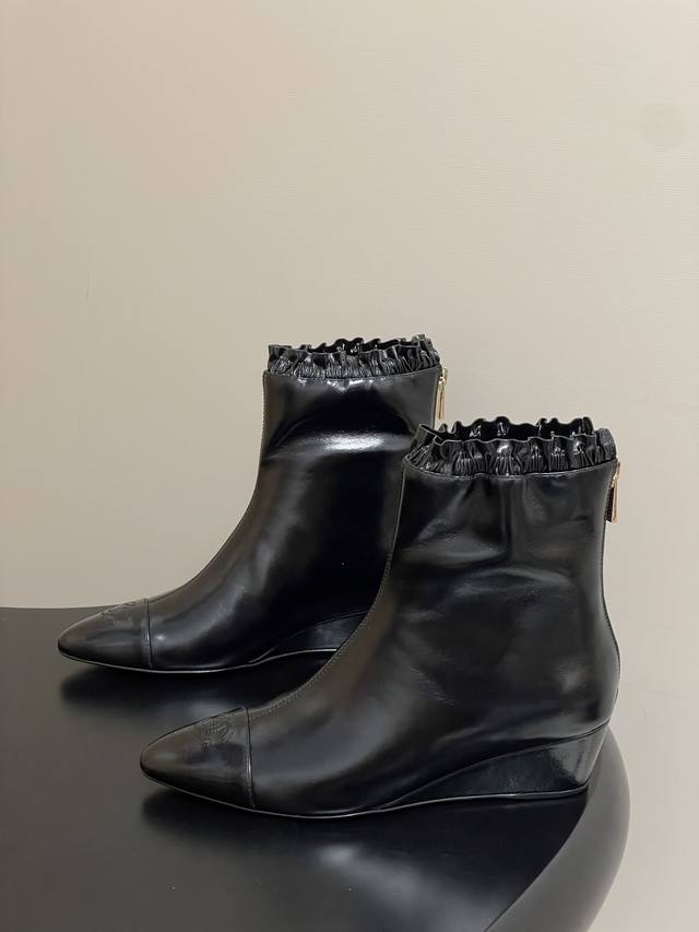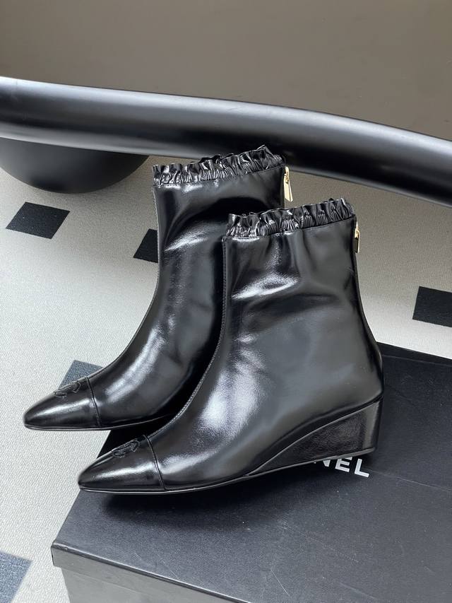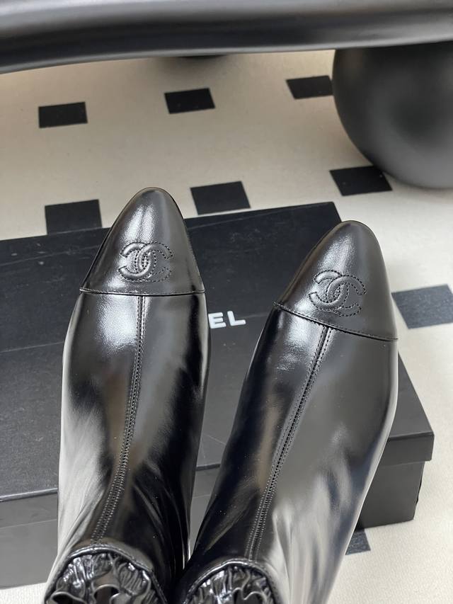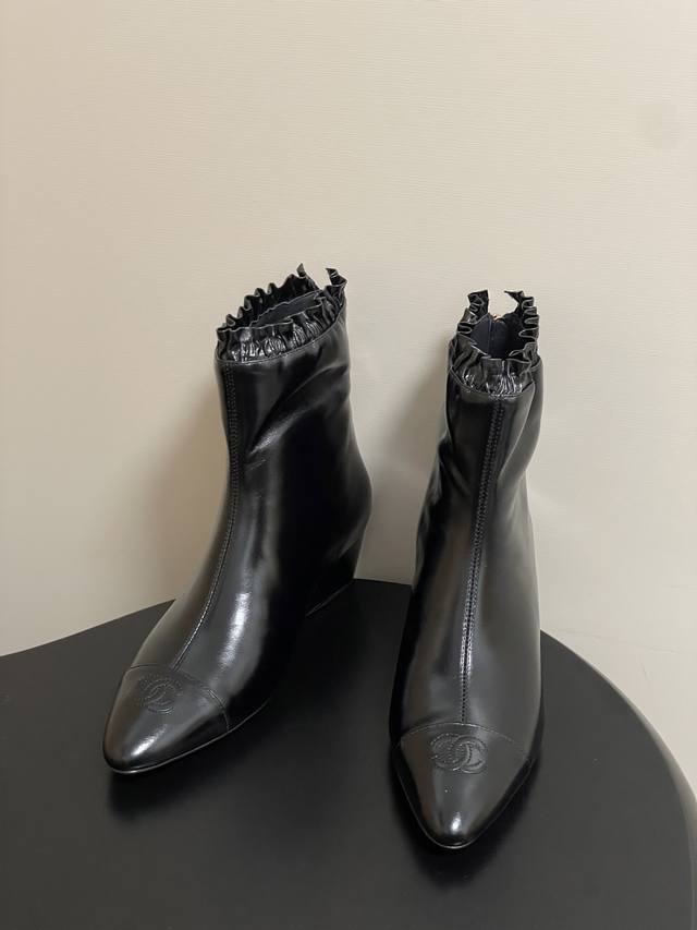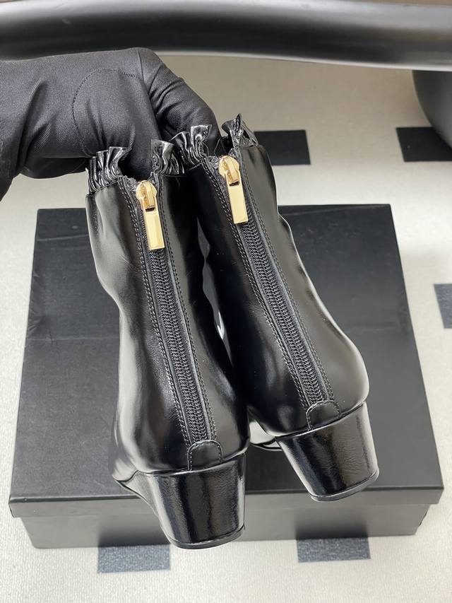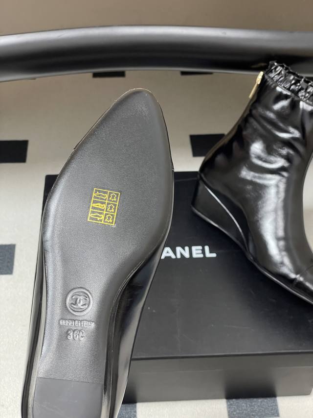 秋冬新款Chanel 25B 小香 双C尖头小坡跟短靴拼色后拉链及踝靴