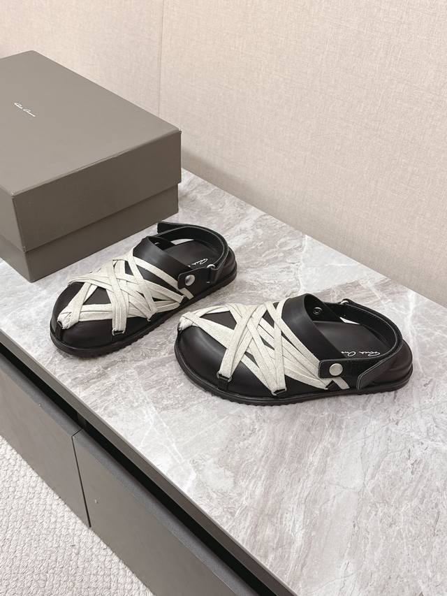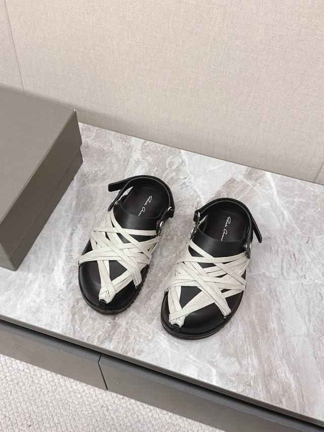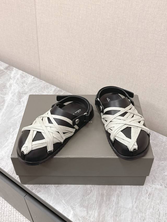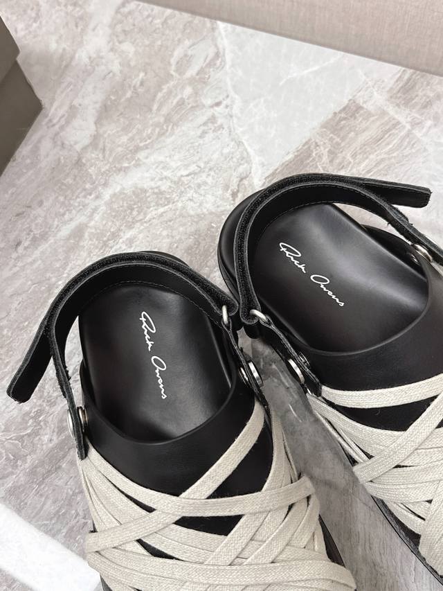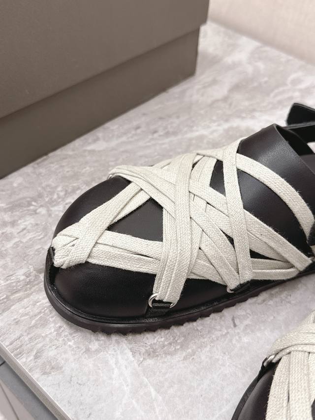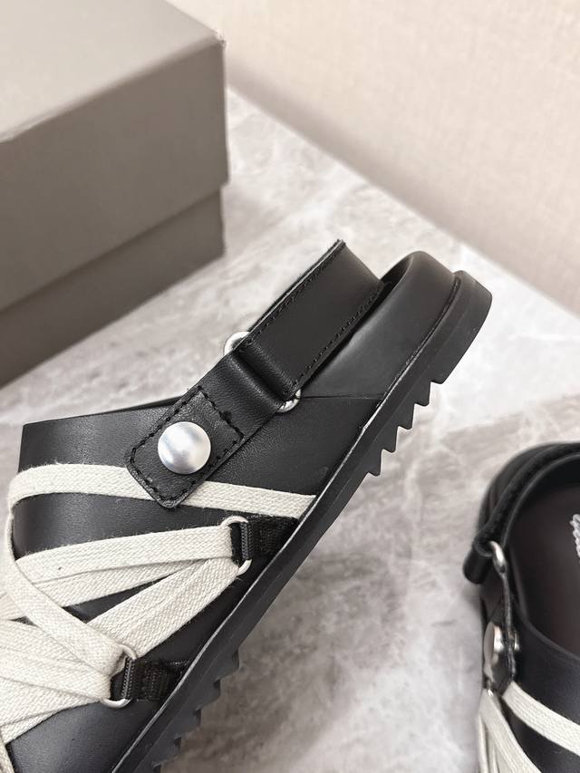 绑带 Rickowens 欧文斯疯狂绑带情侣款拖鞋 麂皮黑色 年度“鞋王”区分市面所有版本 纯手工打造纯原,非流水化作业的产物!尊崇欧文斯的理念,每一只都是独一
