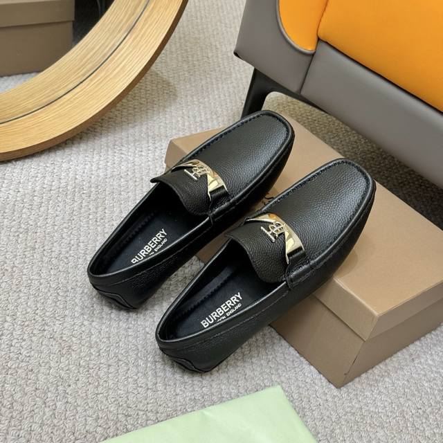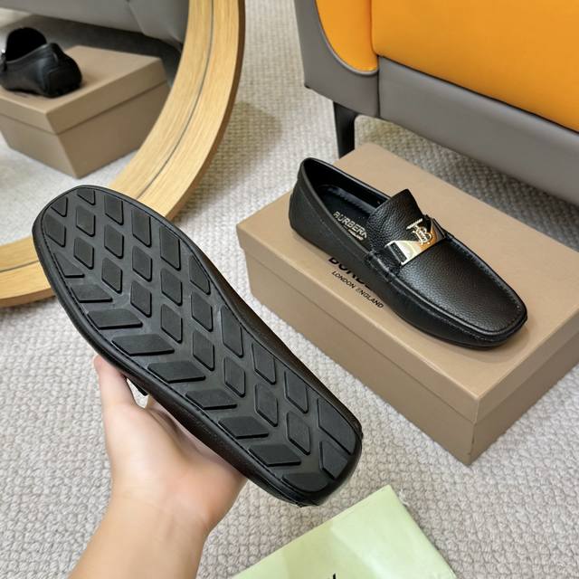 羊里 骑士巴宝莉豆豆鞋 2025新款豆豆鞋, 全新米兰时装时尚的设计,完美做工,鞋面骑士原版复刻 霸气骑士Logo 材质:头层牛皮柔软舒适,羊皮内里 适合户外青年跑步户外司机驾车鞋 套脚方便 懒人乐福首选原版橡胶耐磨大底,男鞋码数:38--44。可做45。46 4-12 码