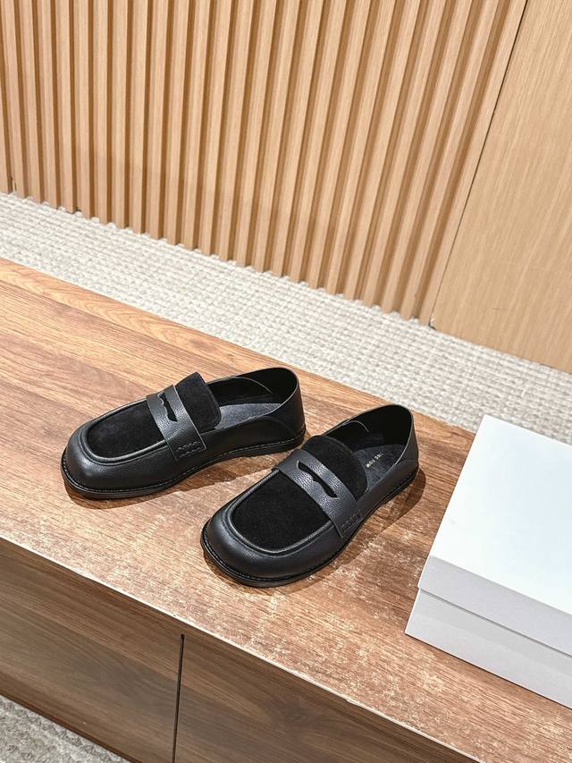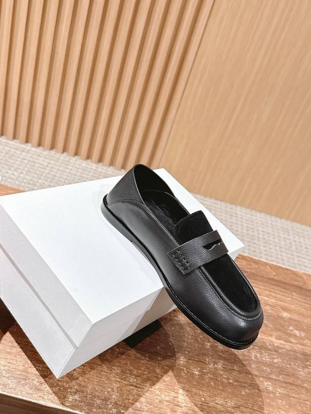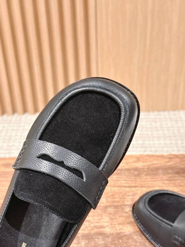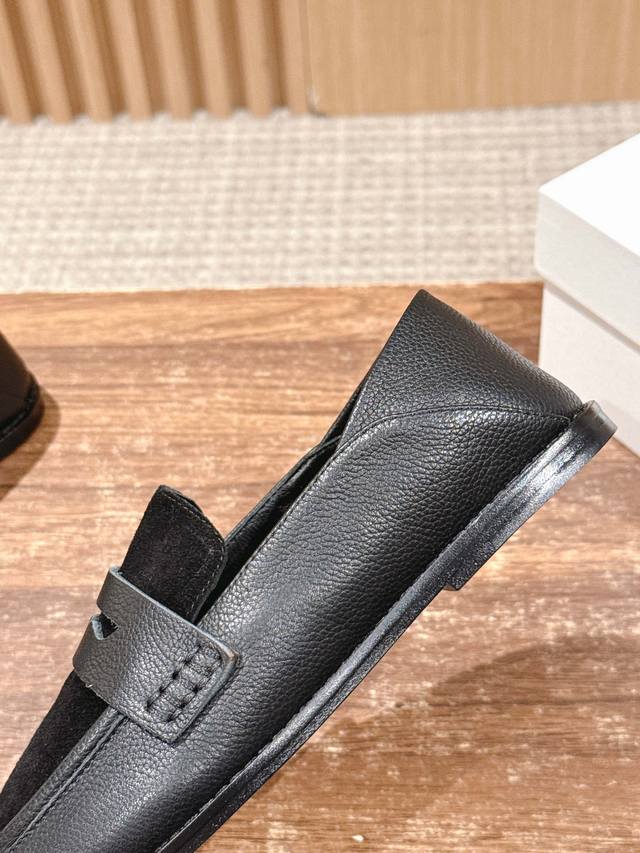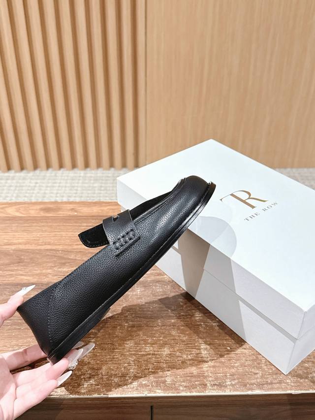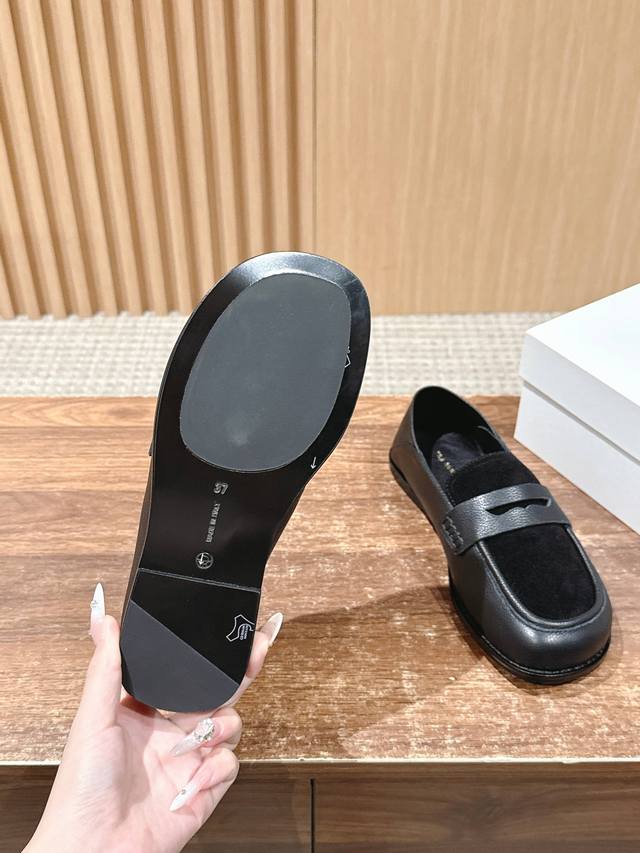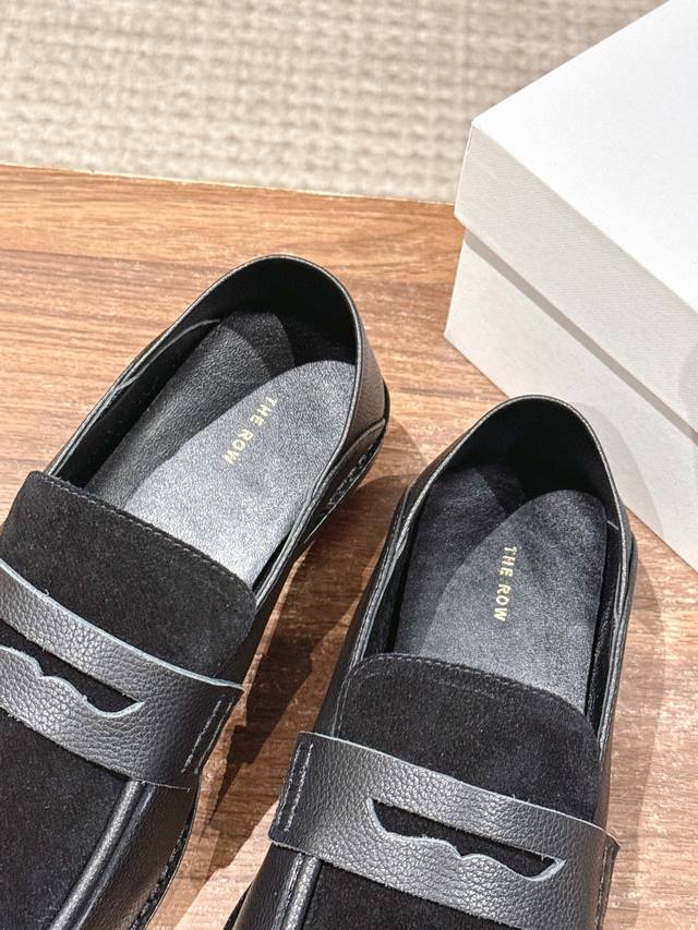 莞产 The Row 新款方头踩跟两穿乐福鞋