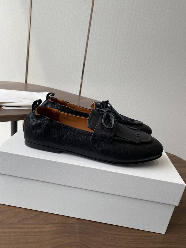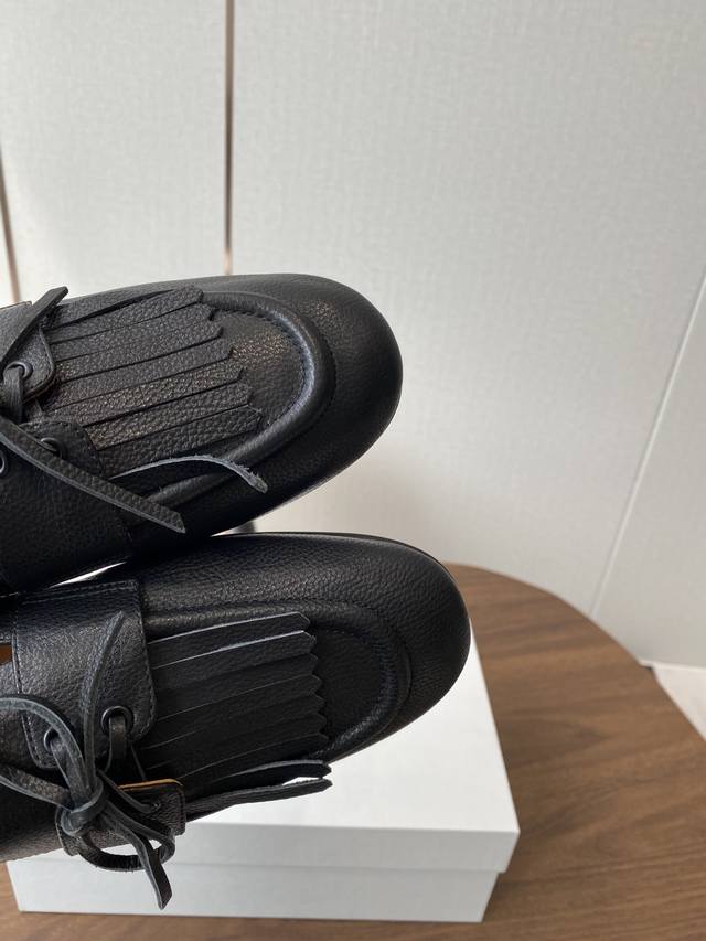 莞产The Row2025年秋冬款流苏松紧乐福鞋,简直就是经典款式,Therow这个品牌,每一季的设计都让人眼前一亮,难以忘怀。要是说颜色选择,那黑色绝对是百搭的不二之选。