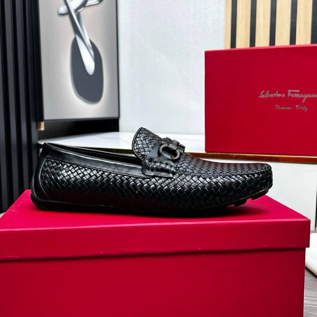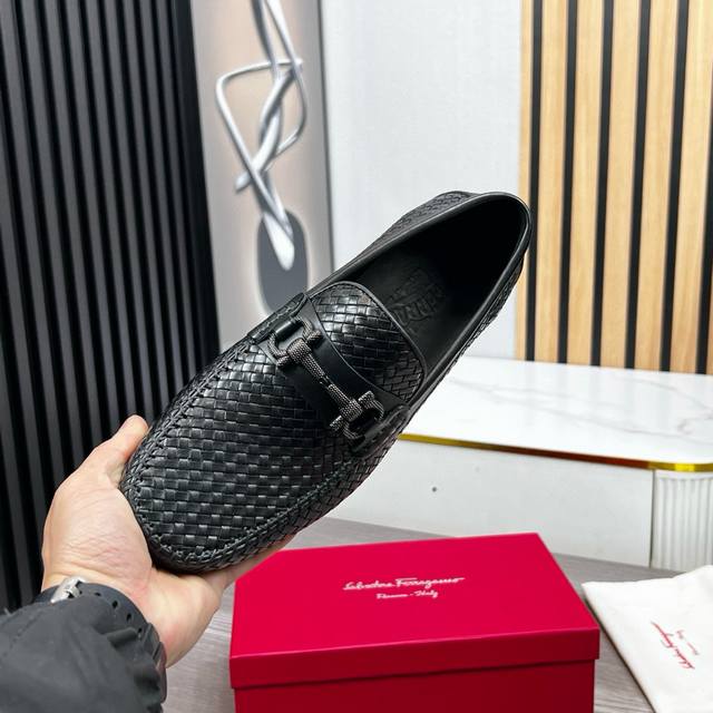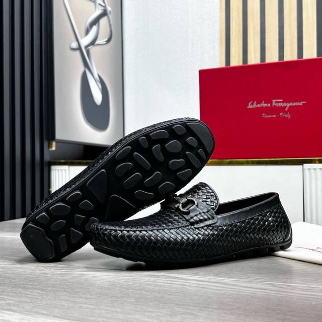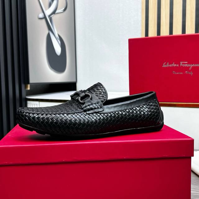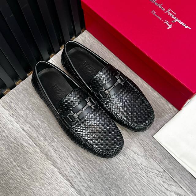 菲拉格慕纯手工经典款男士皮鞋驾车鞋,套脚鞋,选用意大利进口牛皮,水染牛皮内里,原版大底,防水台设计,上脚舒适。出行驾车好选择,两色可选,码数:38-44, 45