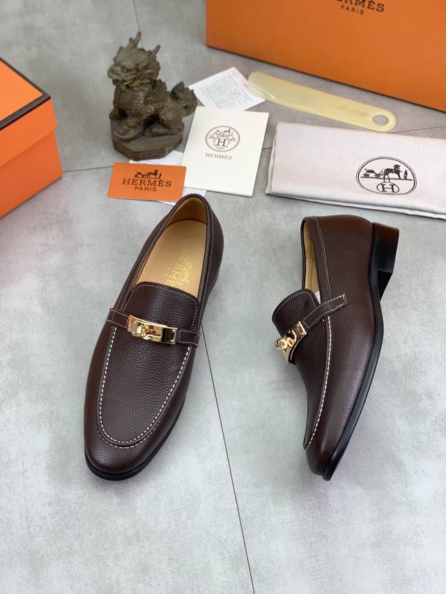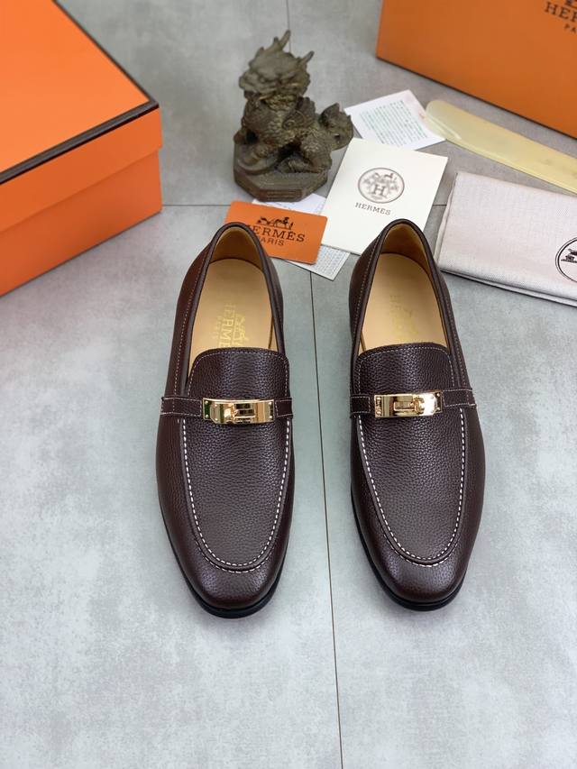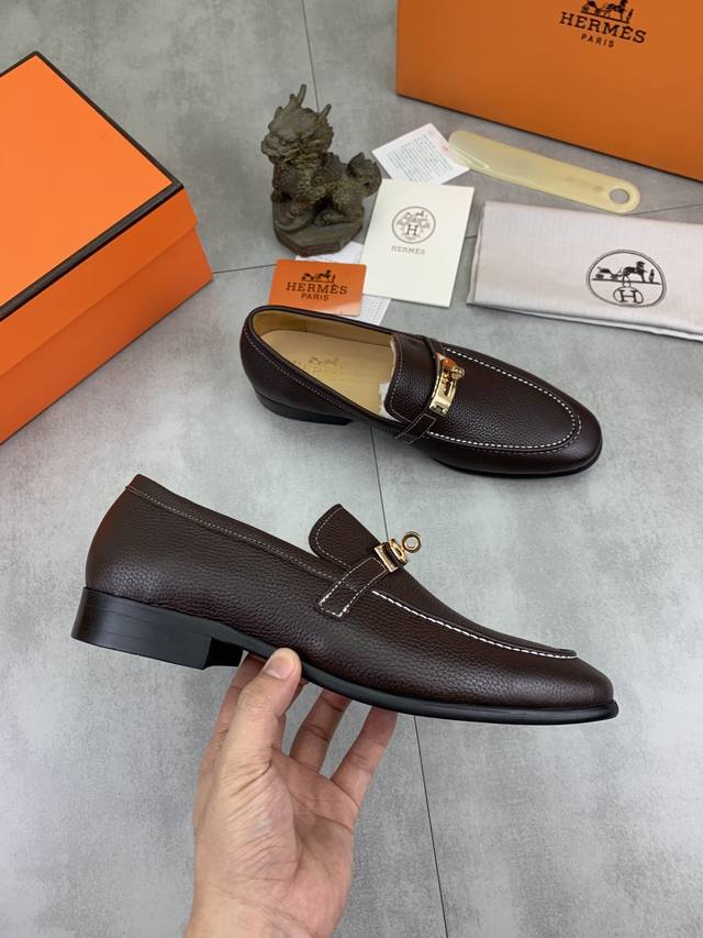 / 调工厂P价 男装男鞋 运动原单水染牛里 爱马仕 爱马仕 男士最新款休闲商务皮鞋!同步上市!面料采用专用进口原版小牛皮,内里采用进口水染牛皮,绝对的奢华打造,引领