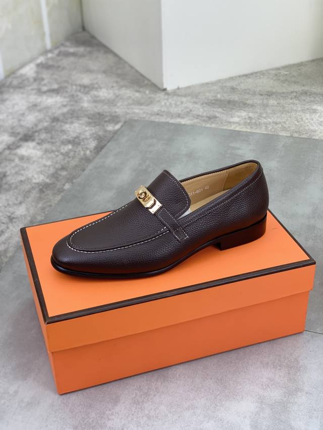 调工厂P价 男装男鞋 运动原单水染牛里 爱马仕 爱马仕 男士最新款休闲商务皮鞋!同步上市!面料采用专用进口原版小牛皮,内里采用进口水染牛皮,绝对的奢华打造,引领时尚潮流。配码:39-45 6色可选