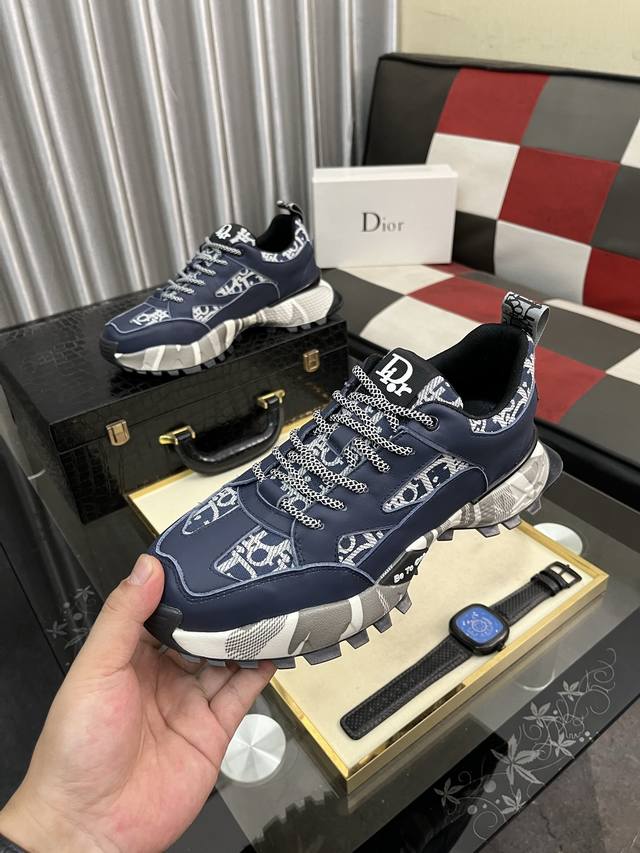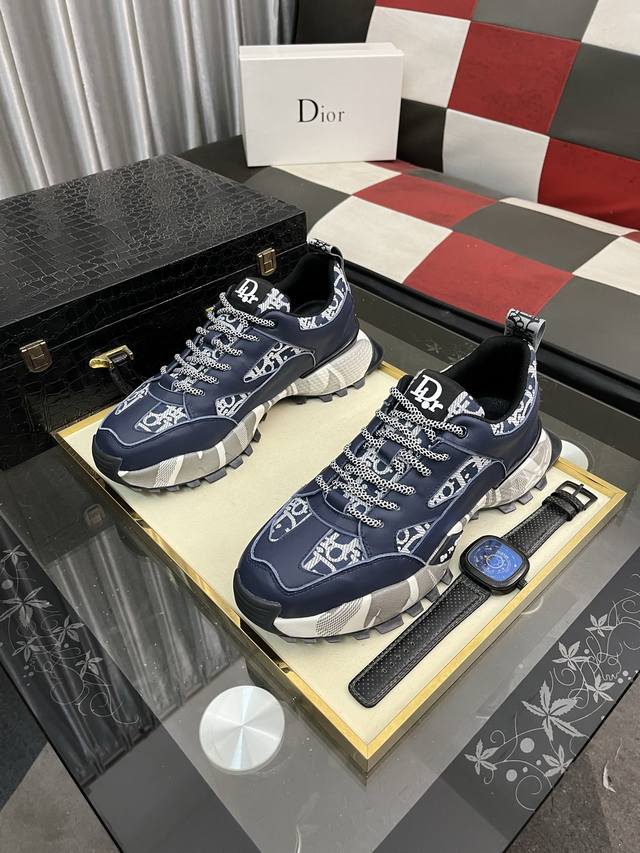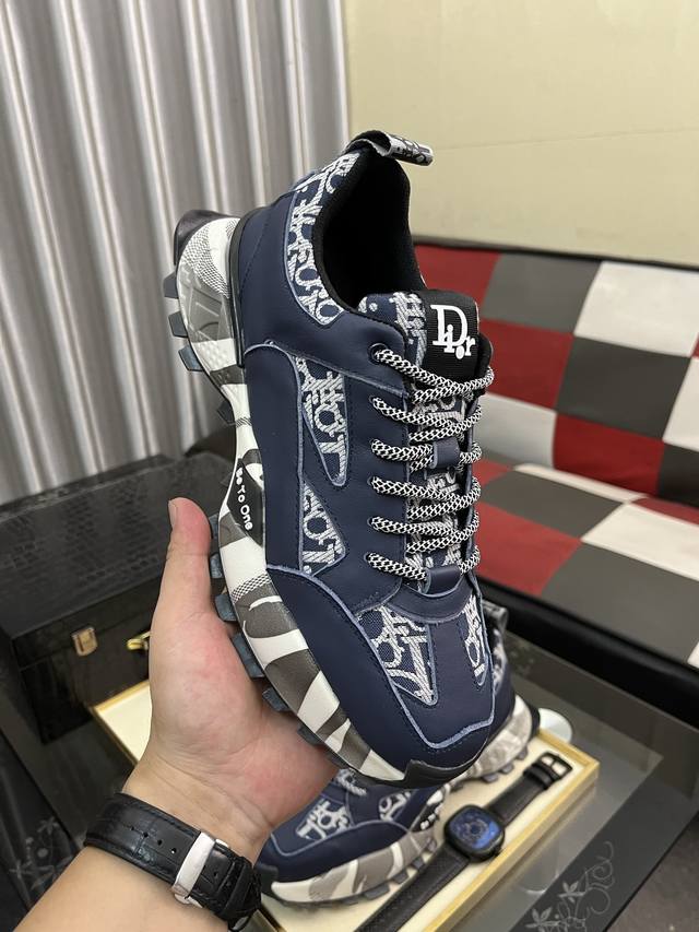 调工厂P价 男装男鞋 运动原单迪奥 独特现代风运动鞋。专柜代购休闲皮鞋 意大利进口原版牛皮 牛里 拒绝脱色磨脚 鞋底:原厂特供原版底,超酷 系带走路都带风风格设