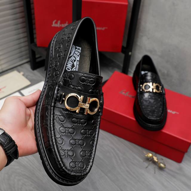 调工厂P价 男装男鞋 运动原单 商品商标:Ferragamo 菲拉格慕 商务休闲套脚鞋 正码码数: 38-45 45.定做不退换 商品材料:精选 压纹牛皮鞋面