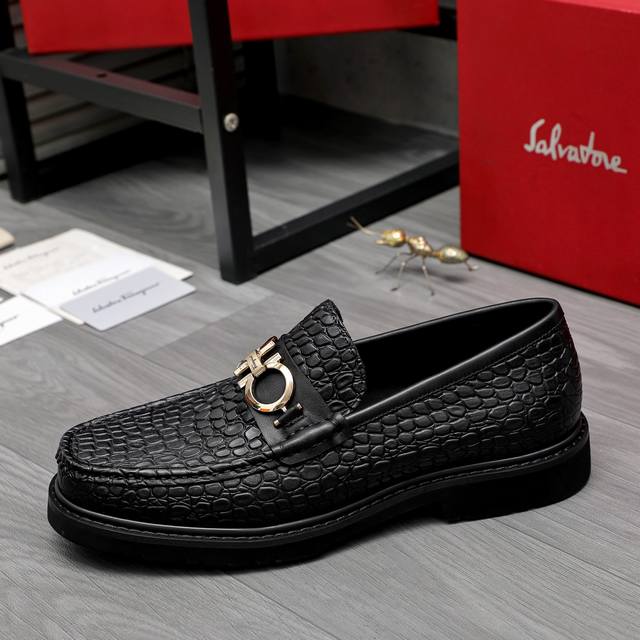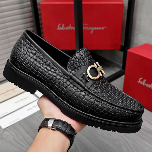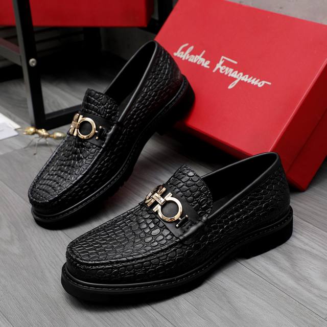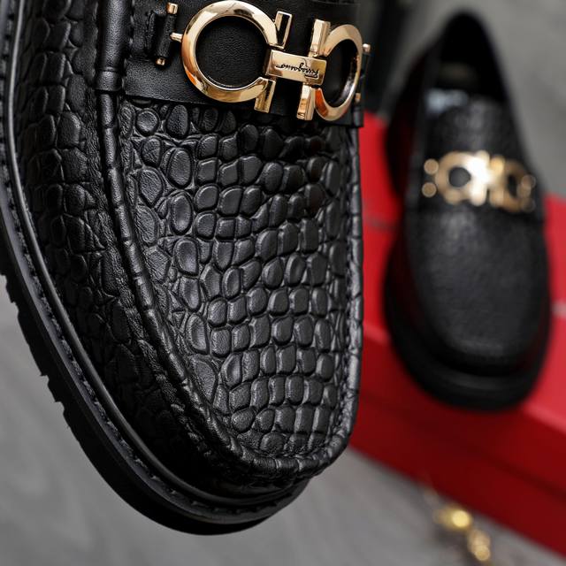 调工厂P价 男装男鞋 运动原单 商品商标:Ferragamo 菲拉格慕 商务休闲套脚鞋 正码码数: 38-45 45.定做不退换 商品材料:精选 石头纹牛皮鞋面