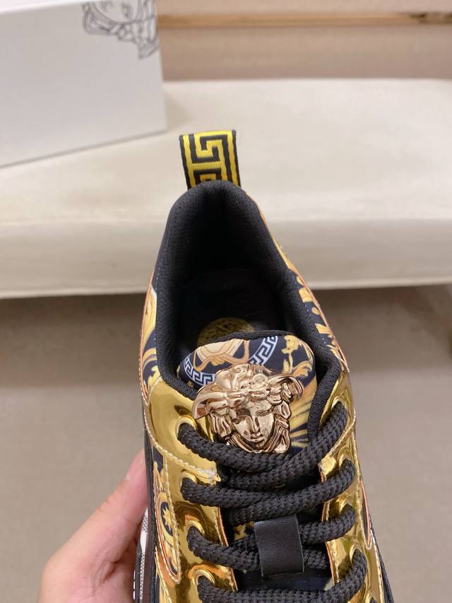 调工厂P价 男装男鞋 运动原单 新款Versace 范思哲 鞋面进口牛皮内里进口羊皮内里 。原版大底开模,每一位男士的身份衬托,上脚大气稳重高端定制专柜原版复刻不管风吹雨打鞋楦不变,经得起时间的验证, 码数:38-44。45定做!