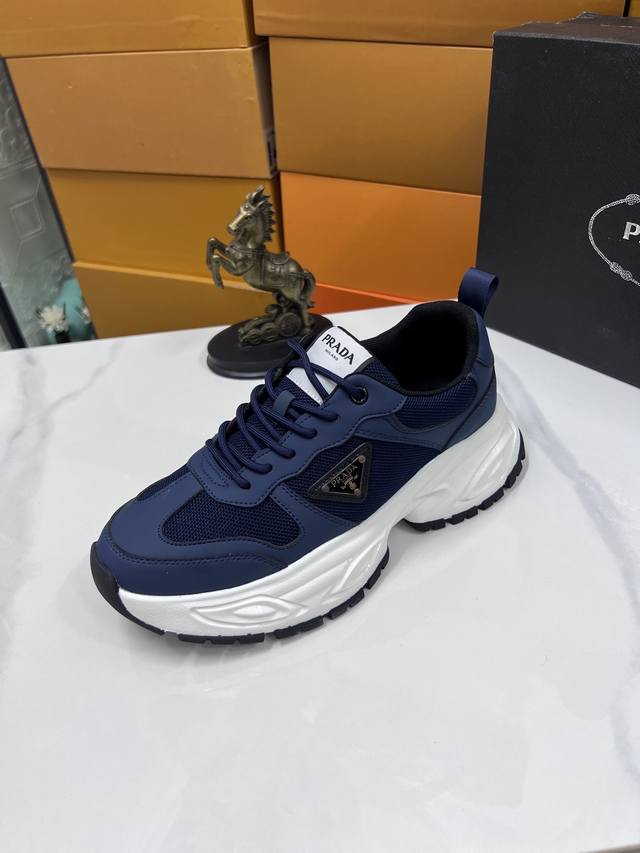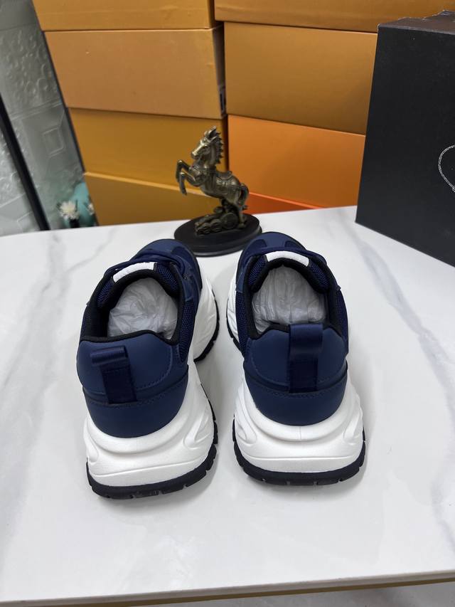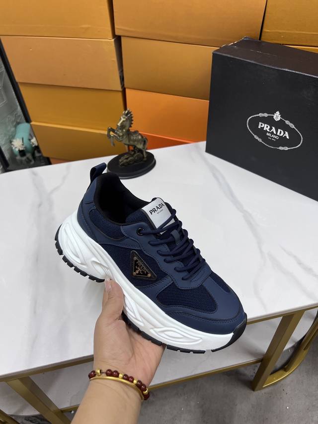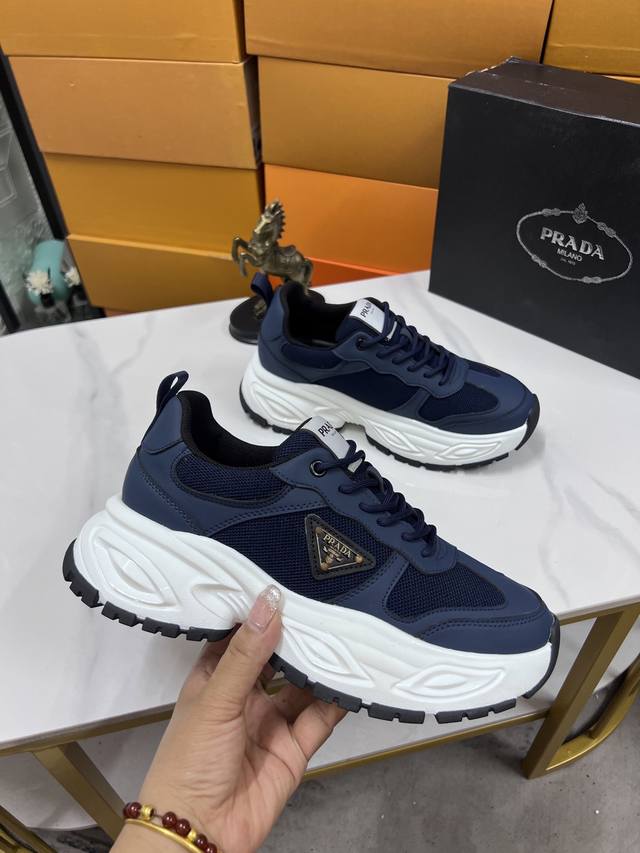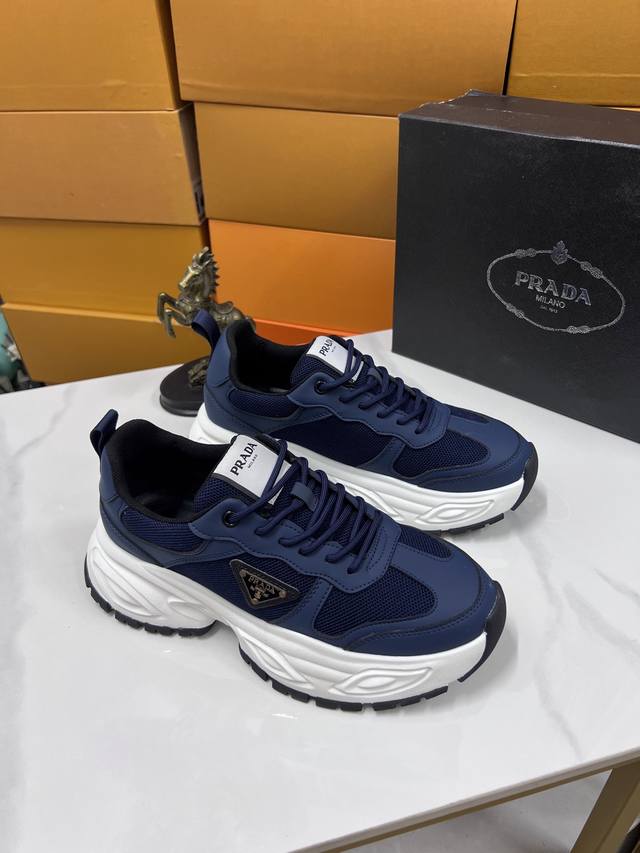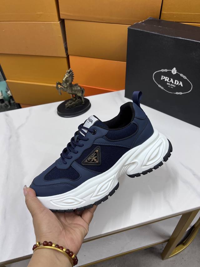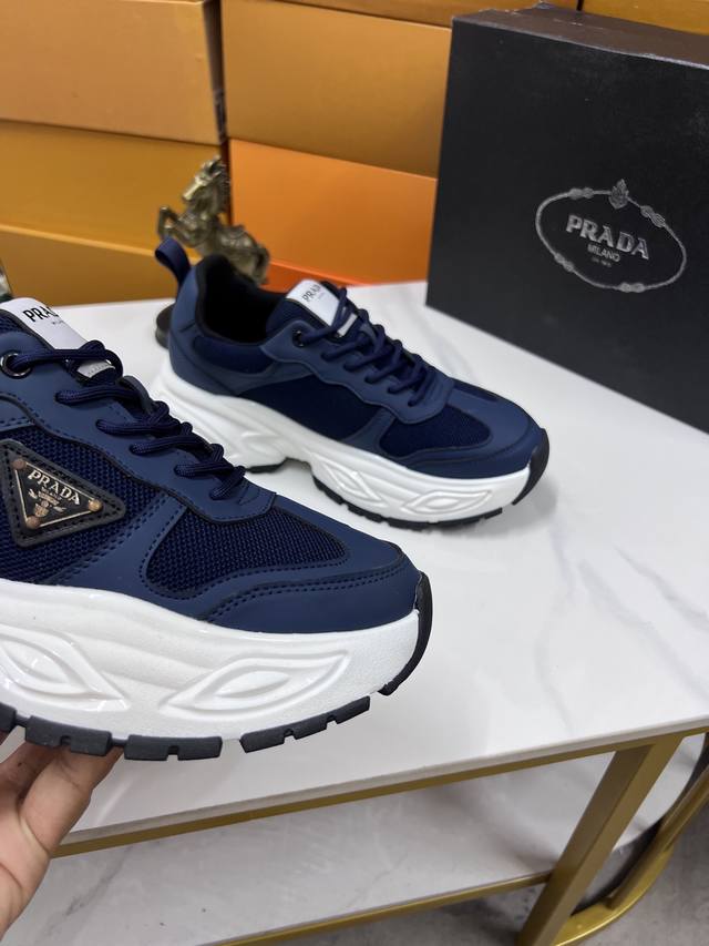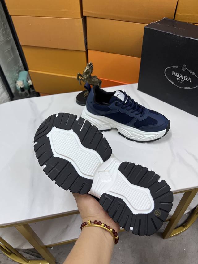 调工厂P价 男装男鞋 运动原单 普拉达 休闲板鞋 官网同步新款 进口打蜡牛皮牛皮内里制作原版中底 私家定制滴胶发泡大底大底组合 38-44M