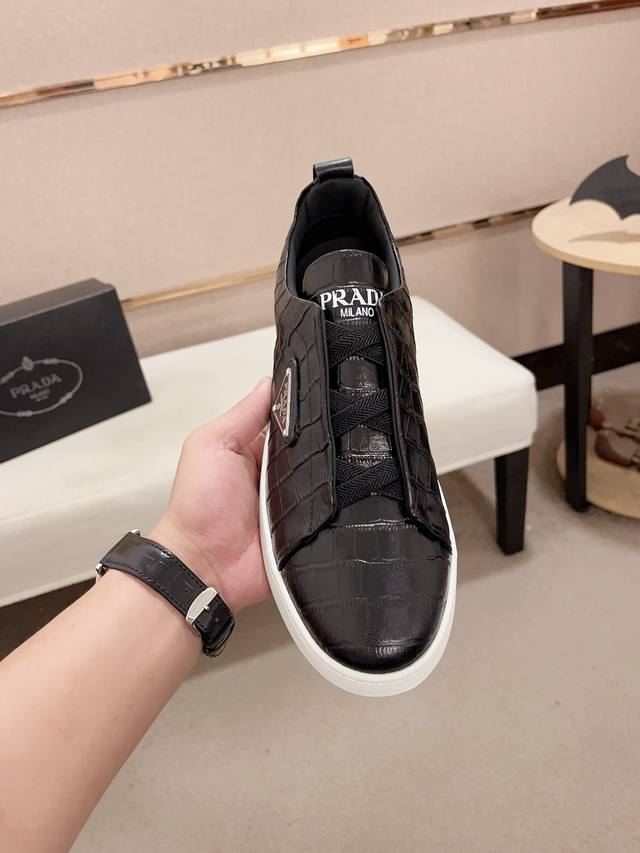调工厂P价 男装男鞋 运动原单 普拉达 官网最新款休闲时尚男鞋,爆款版型简洁大气,潮男专属.独有的官网最新品牌元素元素原版装饰,时尚又大方,面料原版牛皮牛皮内里,官网指定耐磨休闲大底,专柜经典款实物拍摄38-44