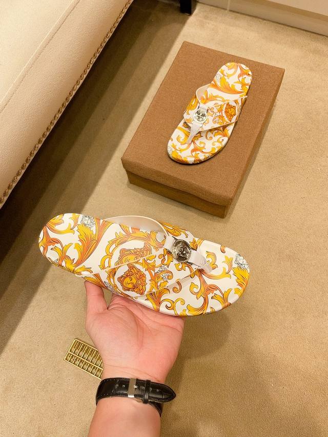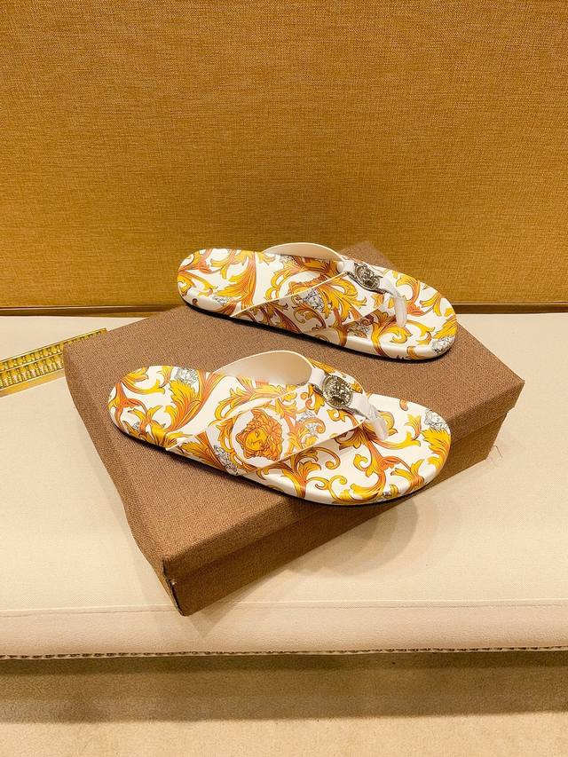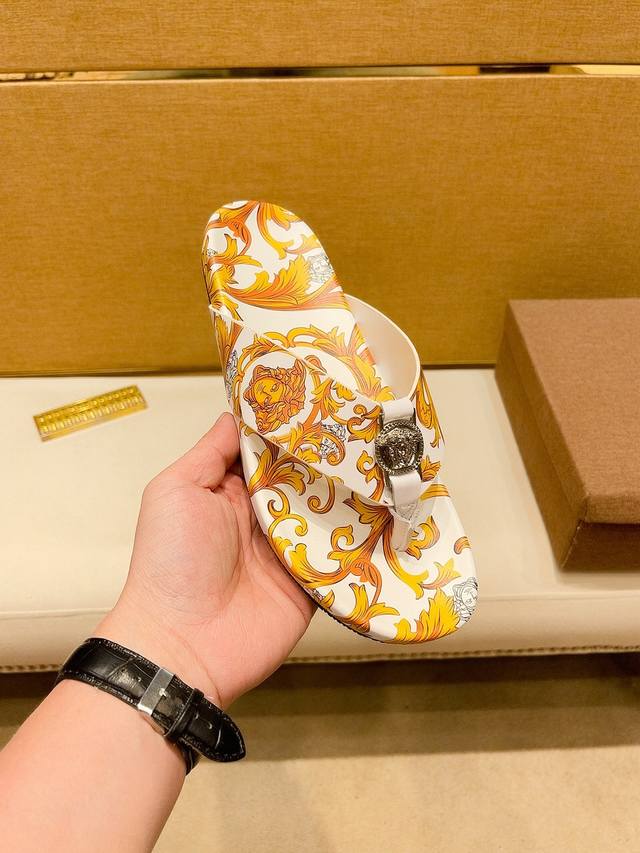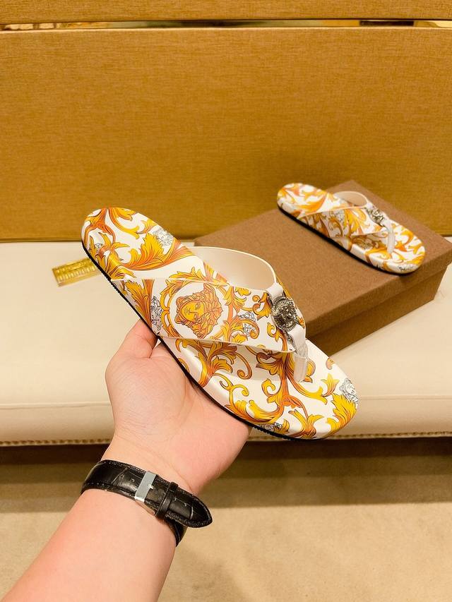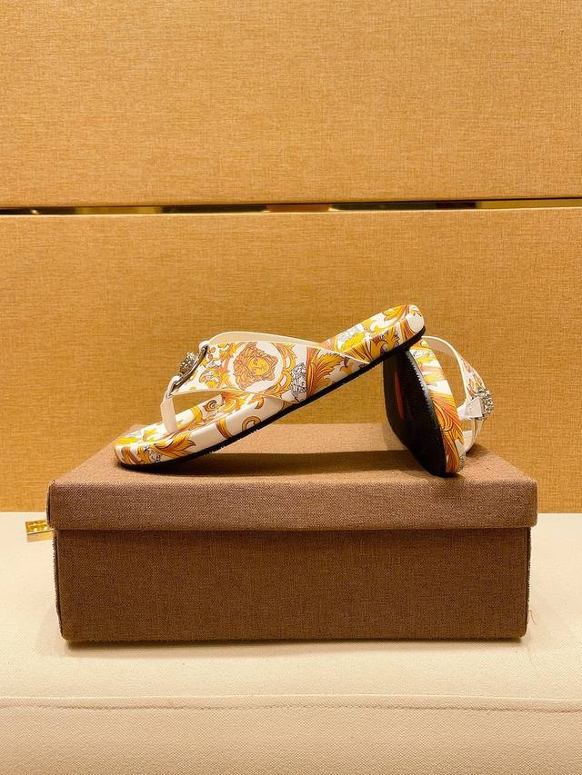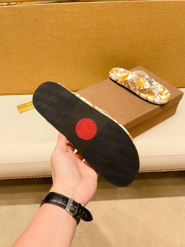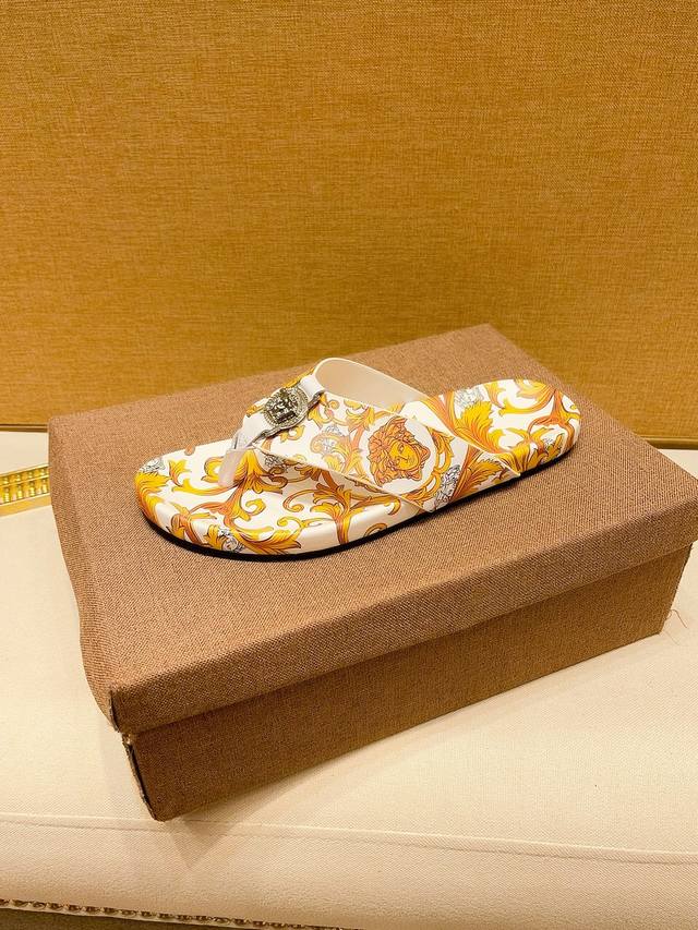 调工厂P价 男装男鞋 运动原单。 范思哲 3D打印牌奢品男士拖鞋,高端精品,原版材质,精细做工,鞋底超软,休闲宽松舒适型,经典老花设计,夏季必入哦!码数38-4