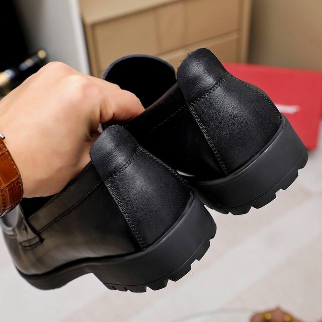 调工厂P价 男装男鞋 运动原单 菲拉格幕 Ferragamo 新款男士休闲套脚鞋官网原版1:1开模,原单品质做工精细,高端奢华鞋面采用进口意大利头层牛皮奢华水染皮内里橡胶耐磨防滑大底,穿着透气舒适高品味男士首选,黑色可选!码数38-45