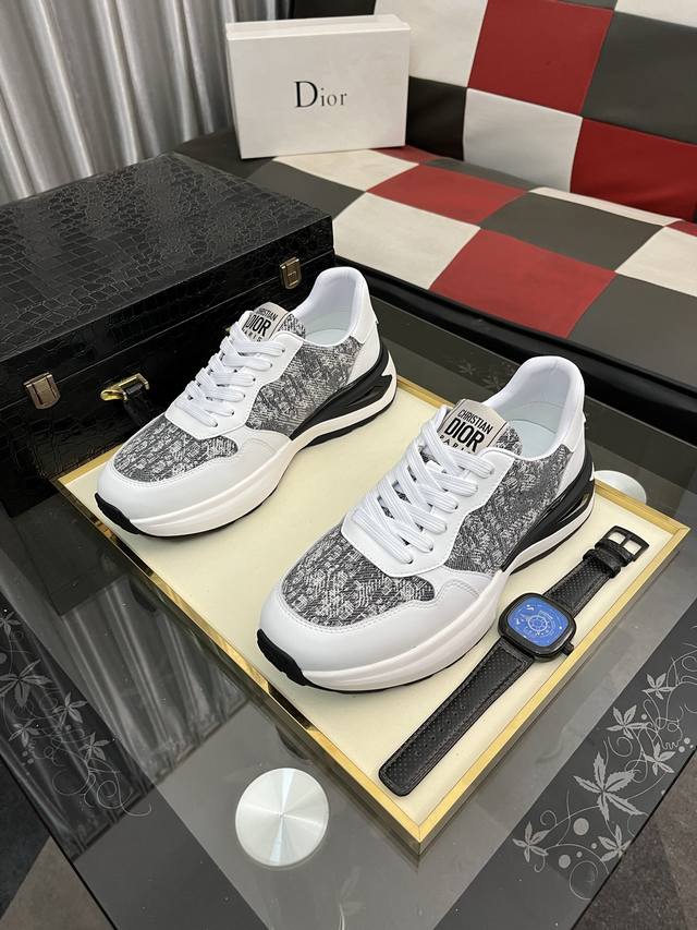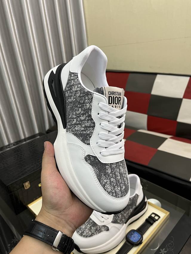 调工厂P价 男装男鞋 运动原单 迪奥Dior 新款休闲鞋,必爆款 ,采用潮流时尚鞋 最新爆款鞋面采用进口牛皮+专用印花面料拼接设计 ,羊皮垫脚,舒服橡胶大底 上脚轻巧舒适 实物更好看、值得拥有、码数:38一442色可选