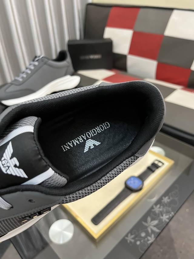 调工厂P价 男装男鞋 运动原单 阿玛尼Armani* 最新爆款休闲鞋,顶端品牌 奢侈~代购,顶级~质量。 鞋面選用进口透气牛皮搭配布料材质透气羊皮垫脚 精细做工