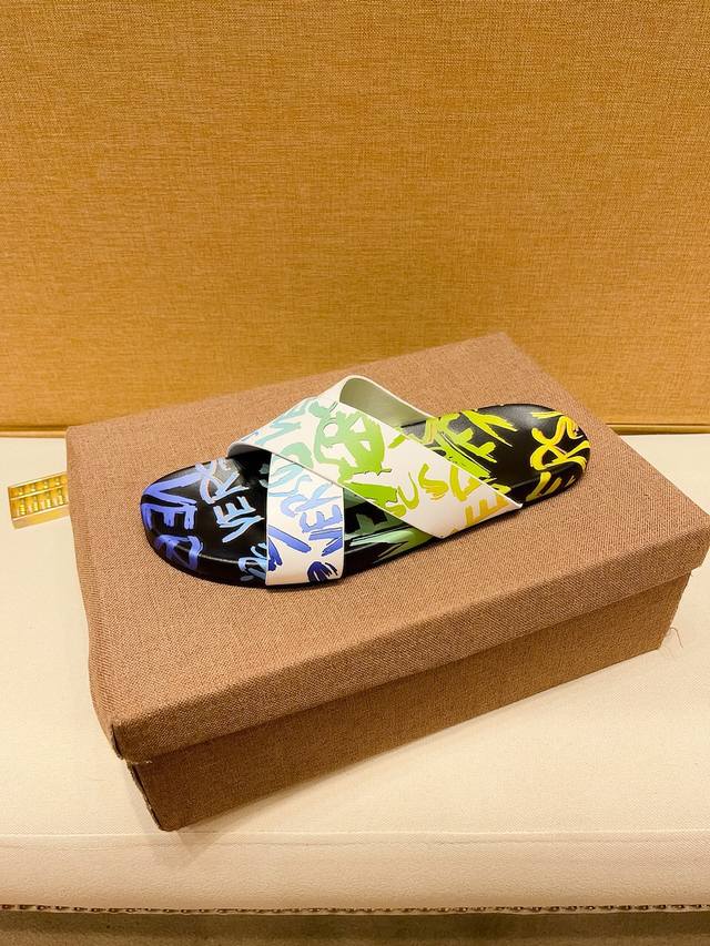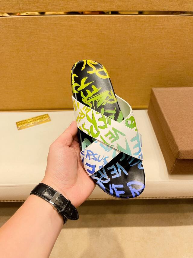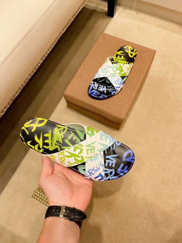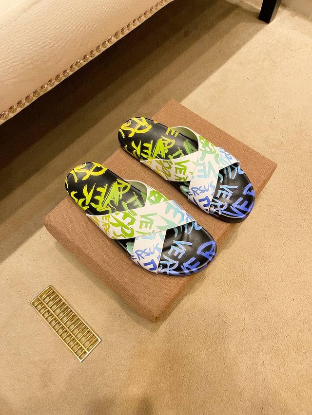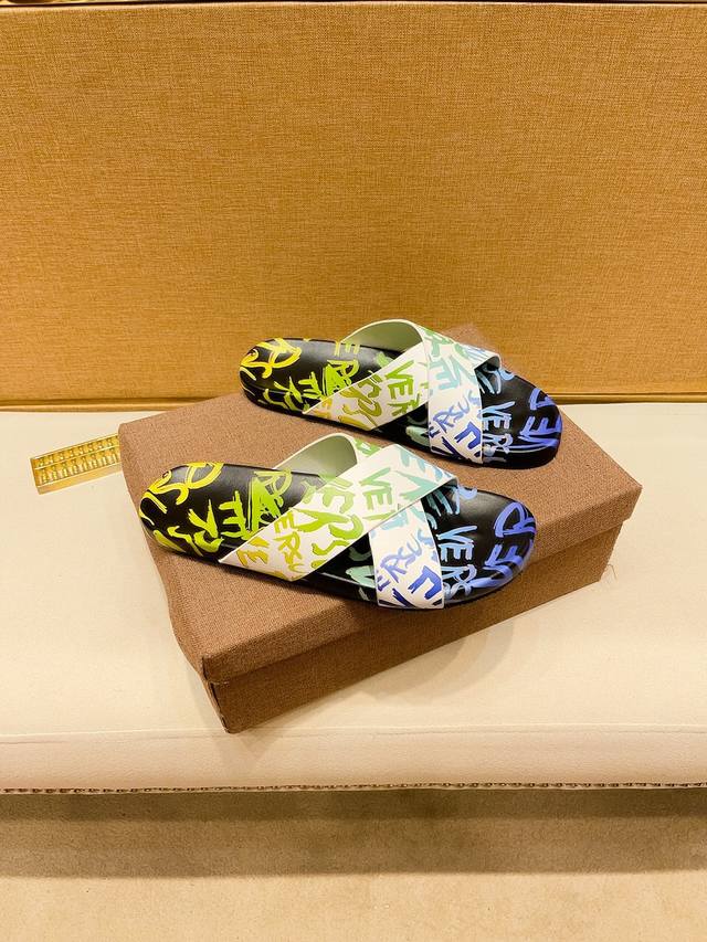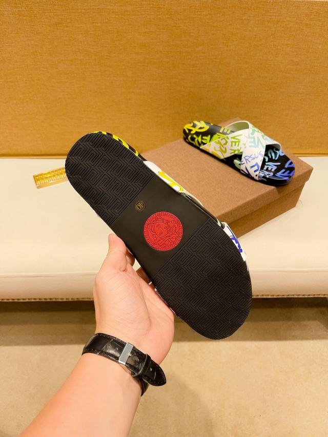 调工厂P价 男装男鞋 运动原单 顶级代购范思哲 男士春夏拖鞋专柜同步 鞋面意大利进口牛皮面料,标志图形高品质工艺,鞋底:原厂特供原版底,独家活动成型底超级舒适,原厂跟单货,高品质,可随意进出专柜,欢迎对比,码数38-45