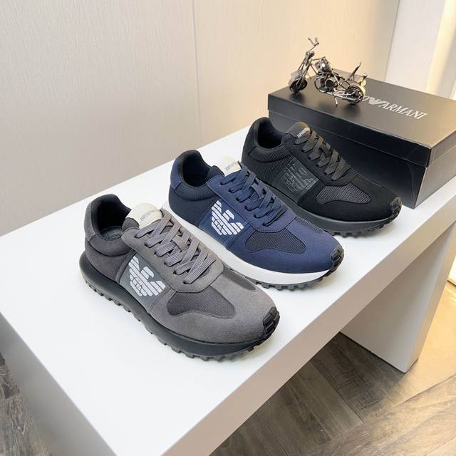 调工厂P价 男装男鞋 运动原单 Armani ] 阿玛尼休闲运动男鞋 :原版1:1复刻,面部采用进口超纤绒+进口网布,运动里布,Tr大底,耐磨有弹力,整体设计和谐统一又不缺乏个 性,低调的奢华!③个色。码数39-44