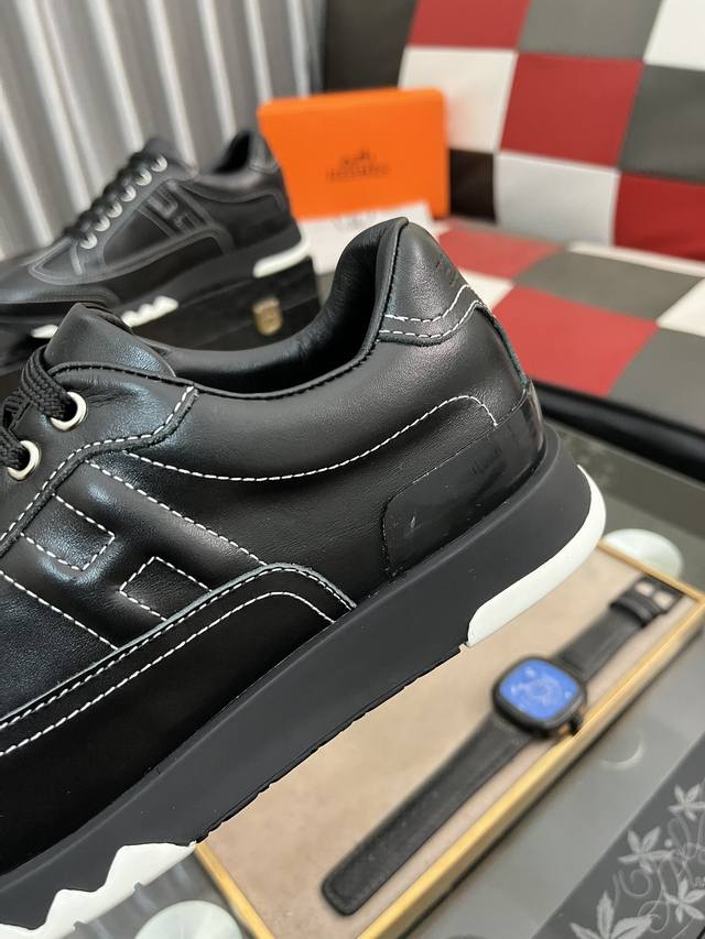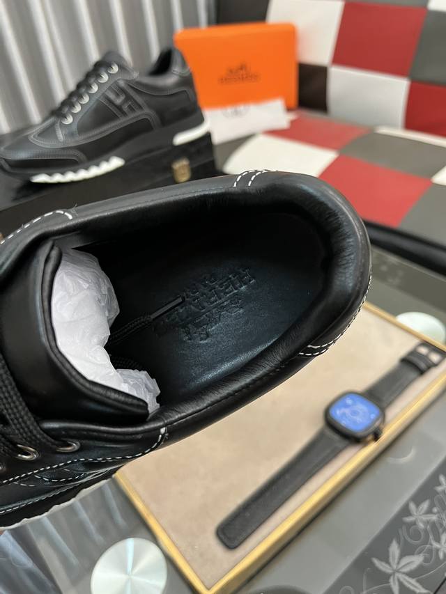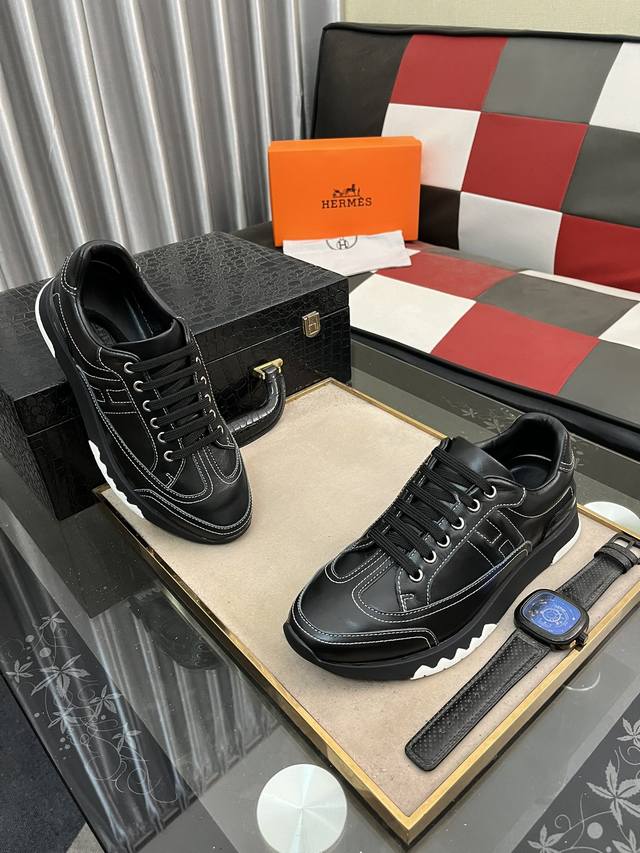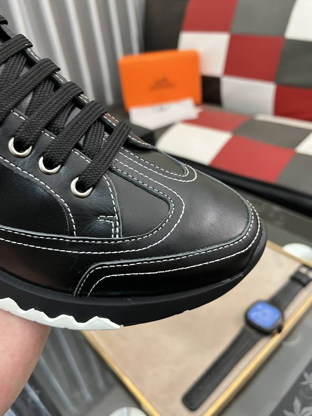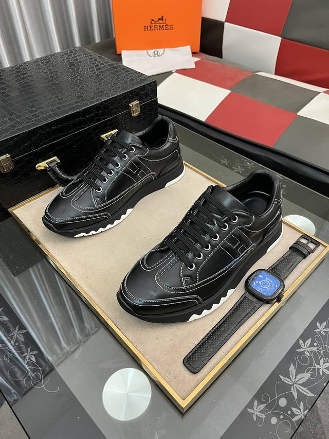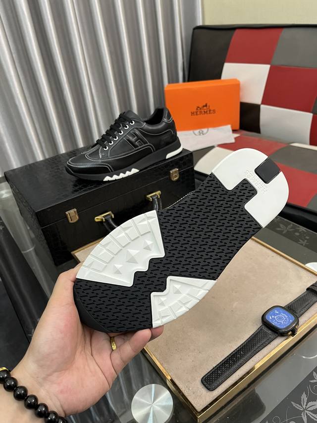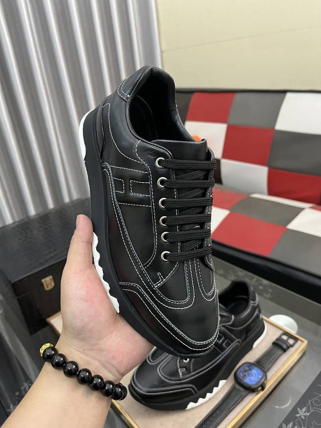 调工厂P价 男装男鞋 运动原单 Herme*爱马仕高端男士时尚休闲运动鞋,精工打造,定制进口飞织制作,叠层设计鞋面线条感层次分明,牛皮内里脚垫,轻质橡胶大底。轻奢风格,复古的舒适圆头,鞋面透气不闷脚,简约大气,上脚舒适富有潮流感:38-445色可选