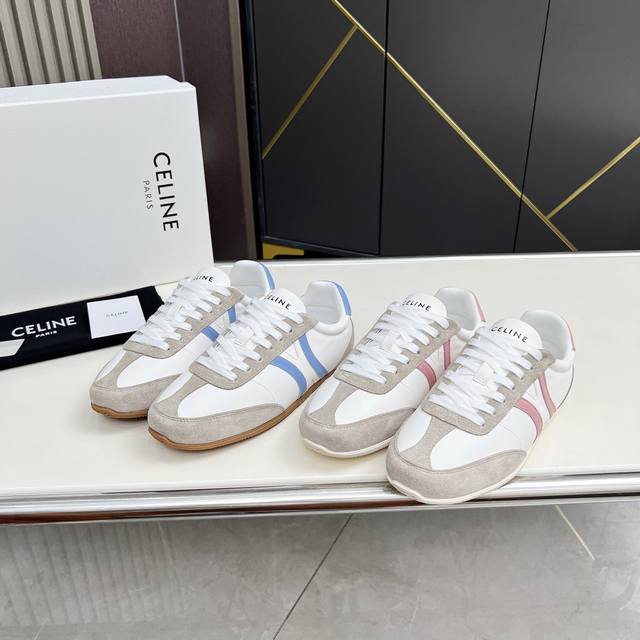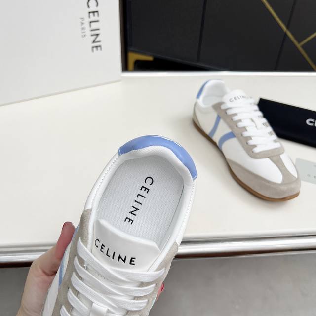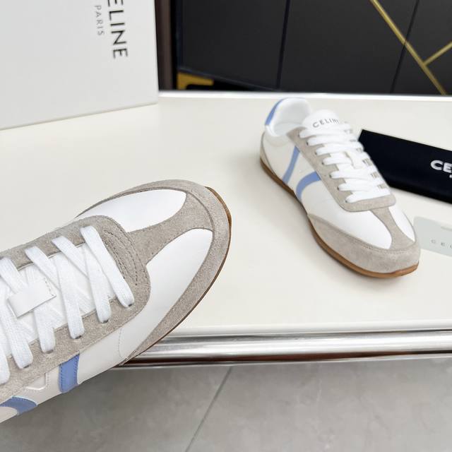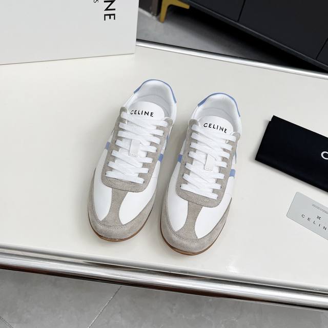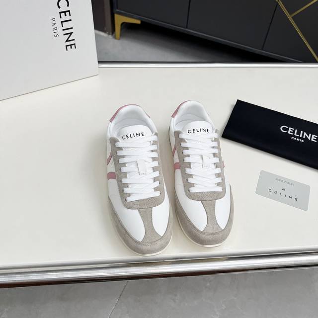 赛琳Jogger Triomphe标志牛皮革 牛皮绒面革低帮系带运动鞋!Jogger以极简鞋型点晴日常穿搭兼具柔美与率性 简约百搭轻便舒适 面料牛皮 丝光牛绒,