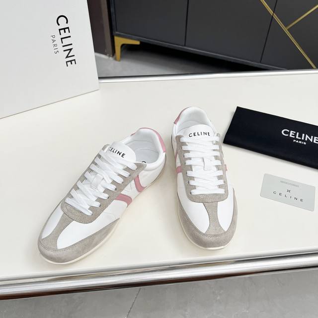 赛琳Jogger Triomphe标志牛皮革 牛皮绒面革低帮系带运动鞋!Jogger以极简鞋型点晴日常穿搭兼具柔美与率性 简约百搭轻便舒适