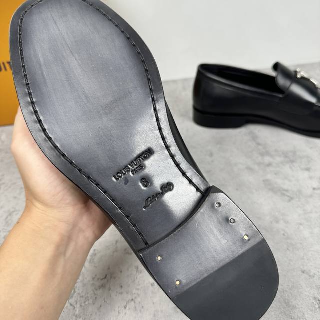路易威登 Lv Major系列乐福鞋男款出货!进口胎牛皮面,真皮缝合拼接焗边工艺, 高端材料胎牛皮材质,皮料细腻高端 看实物效果 套脚款设计非常好穿脱 搭配真皮扣带,搭配铜扣五金Lv字母 同心锁徽章标识, 本染小牛皮内里,三色Logo标志徽章细节,真皮垫脚。意大利进口真皮皮胚底层,擦色工艺处理,后跟搭配橡胶底片,尽显奢华时尚。 全套包装重工打造,皮料材质,做工工艺看细节,追求高品质的看过来!