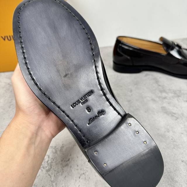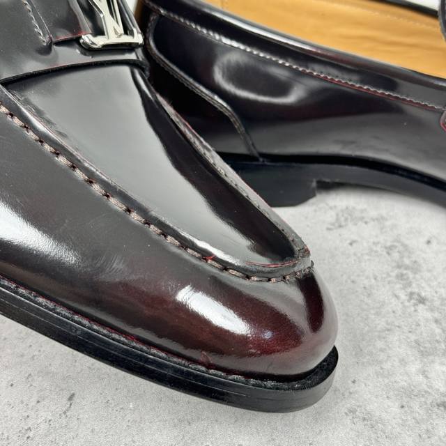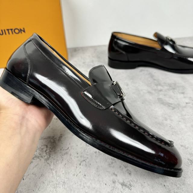 路易威登 Lv Major系列乐福鞋男款出货!进口胎牛皮面,真皮缝合拼接焗边工艺, 高端材料胎牛皮材质,皮料细腻高端 看实物效果 套脚款设计非常好穿脱 搭配真皮扣带,搭配铜扣五金Lv字母 同心锁徽章标识, 本染小牛皮内里,三色Logo标志徽章细节,真皮垫脚。意大利进口真皮皮胚底层,擦色工艺处理,后跟搭配橡胶底片,尽显奢华时尚。 全套包装重工打造,皮料材质,做工工艺看细节,追求高品质的看过来!